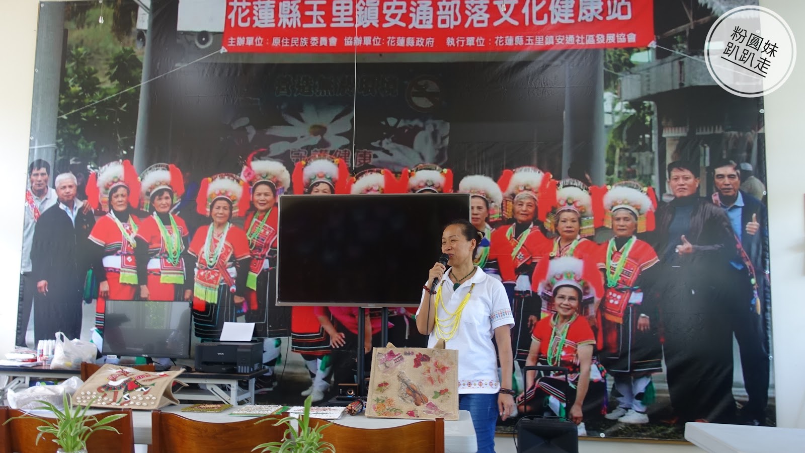 安通部落於花蓮縣玉里鎮玉長公路起點附近,來到安通部落文化健康站,寬廣舒適的空間,是部落族人平常運動、課程、開會、活動交流的場所,阿美族老師帶領大家跳一段阿美族舞蹈,非常的簡單易上手,大家宛若是天生的阿美族舞者,而且氣氛立刻活絡了起來,笑聲不斷。