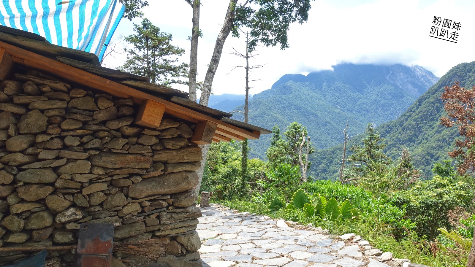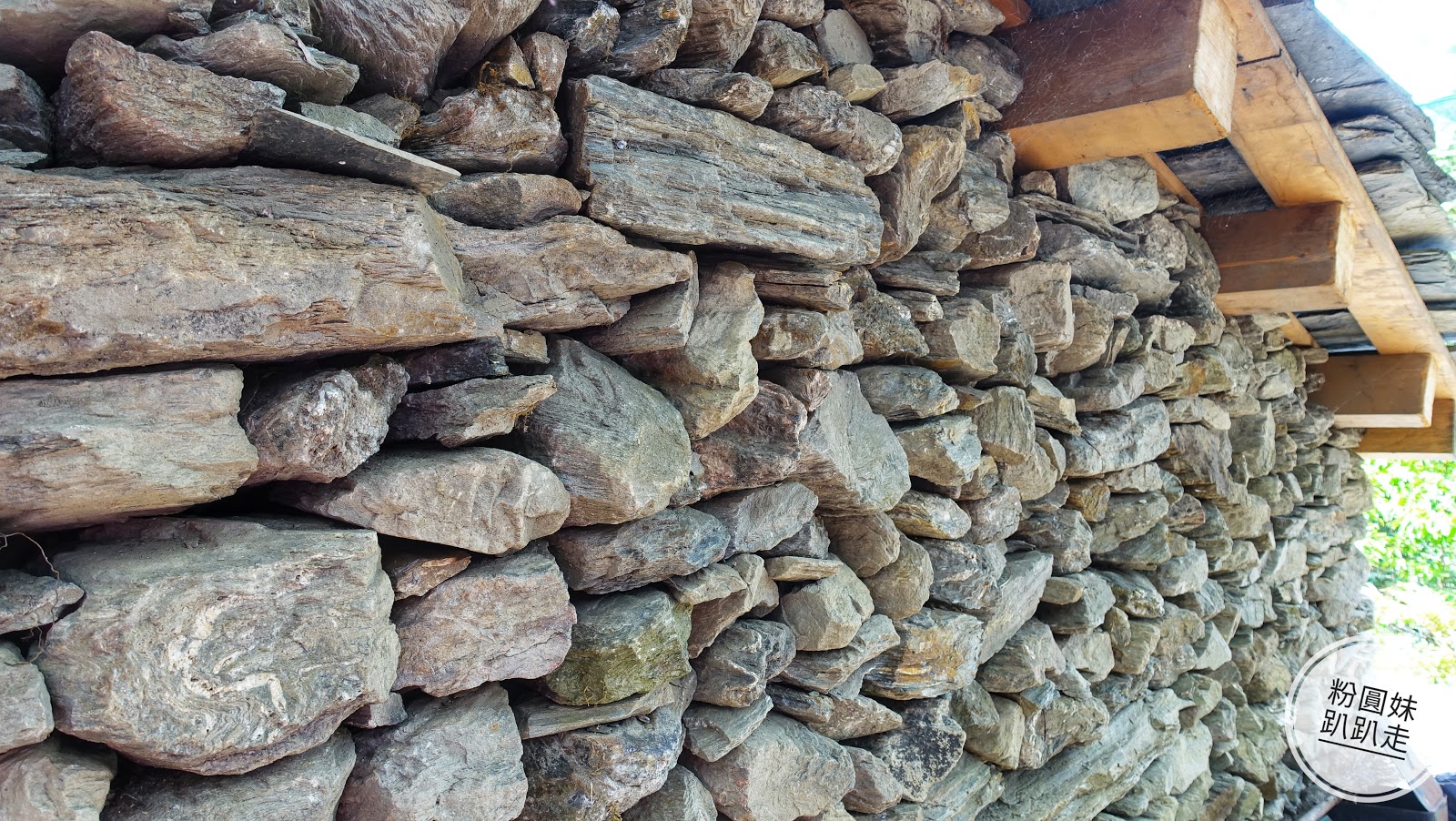 屋外前庭風光優美,青山綠樹環繞,因為屋內空間不大,白天族人多在庭院做事,小孩也在庭院玩耍,所以前庭會鋪設石板,屋後和兩側建置排水系統等,整個石板屋呈現著複雜的知識系統。