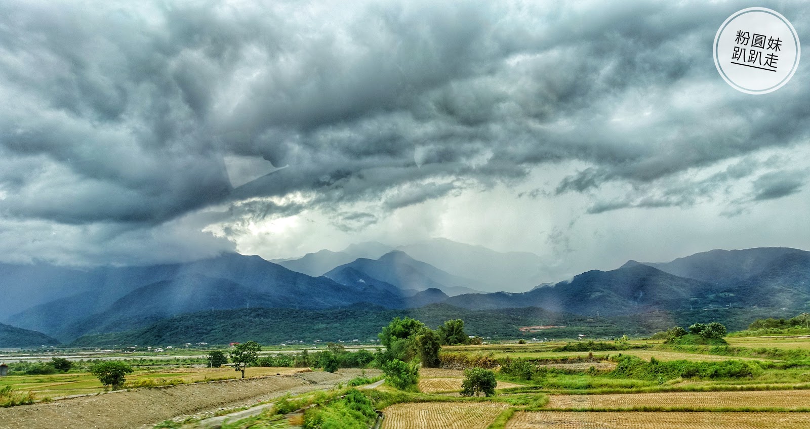 東里鐵馬驛站前身為舊東里車站,是玉富自行車道北上的起點,月台前橫亙著中央山脈,以及無垠的阡陌景致,花東縱谷的美麗景色一覽無遺,被譽為「山線最美的車站」。特別驅車前來欣賞稻米彩繪,一陣狂風大雨把我們困在月台上,看著前方的山脈,從清晰到朦朧,景色變化多端,是老天賞賜給我們的大景。