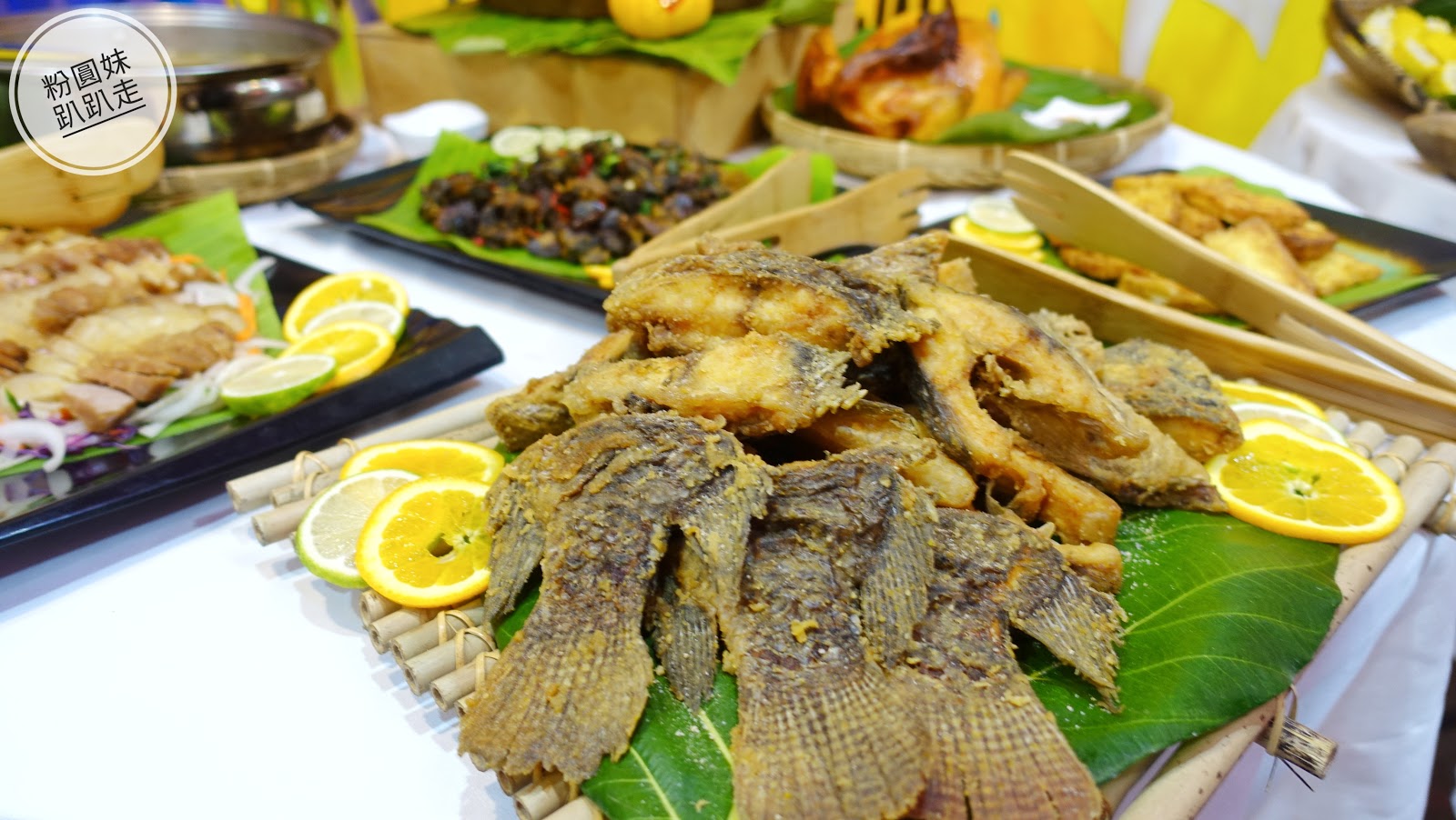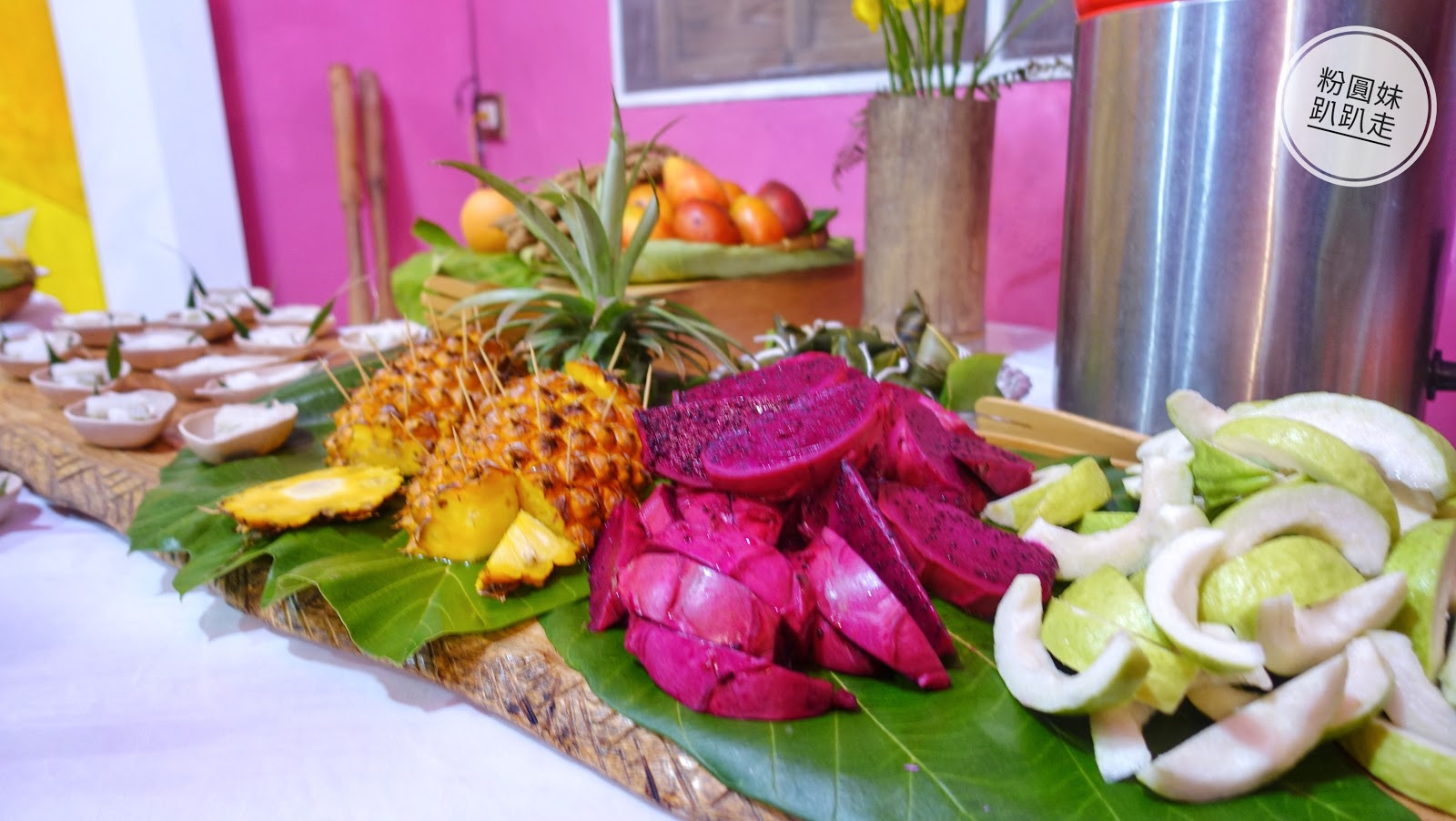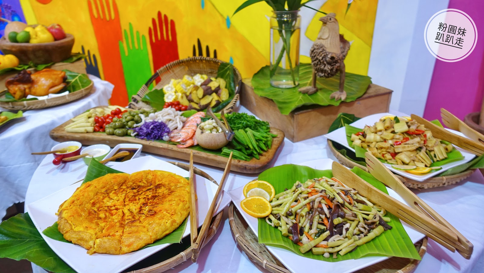 織羅部落的風味餐有如宴席般的陳列,活發、多彩的擺設,如同阿美族人的個性一般,好多部落特色食材是我們平地人難得一見的,非常的新奇,也非常挑戰味蕾,其中苦茄(車輪茄)、金多兒筍都帶有苦味,像是驚喜包般的在口腔中炸開,這才知道阿美族人是一個非常會吃苦的族群。