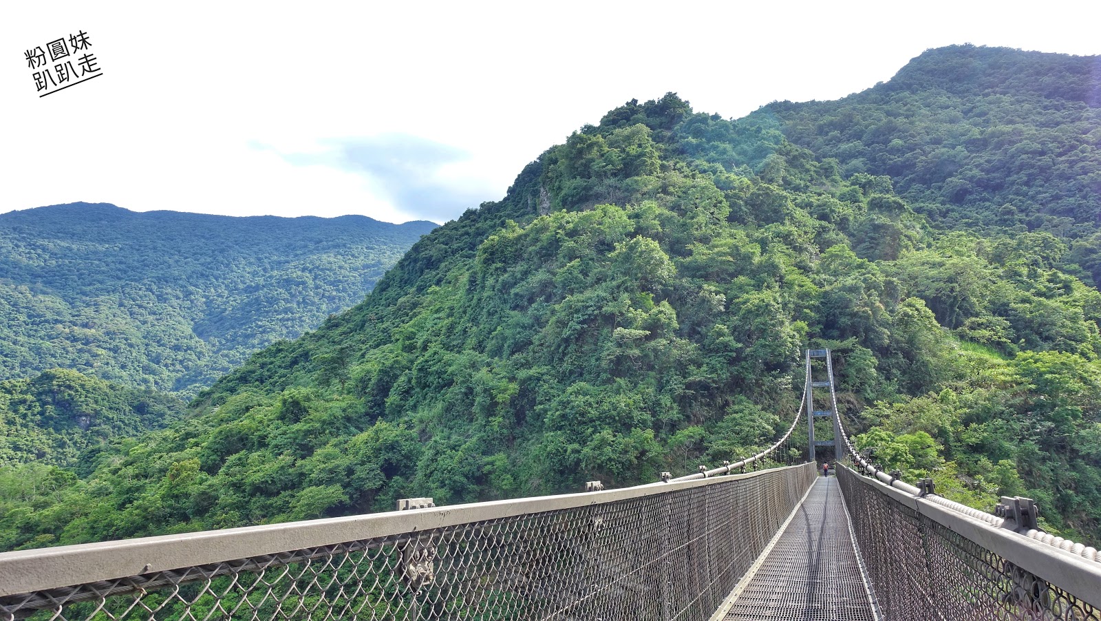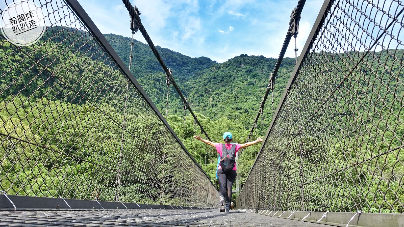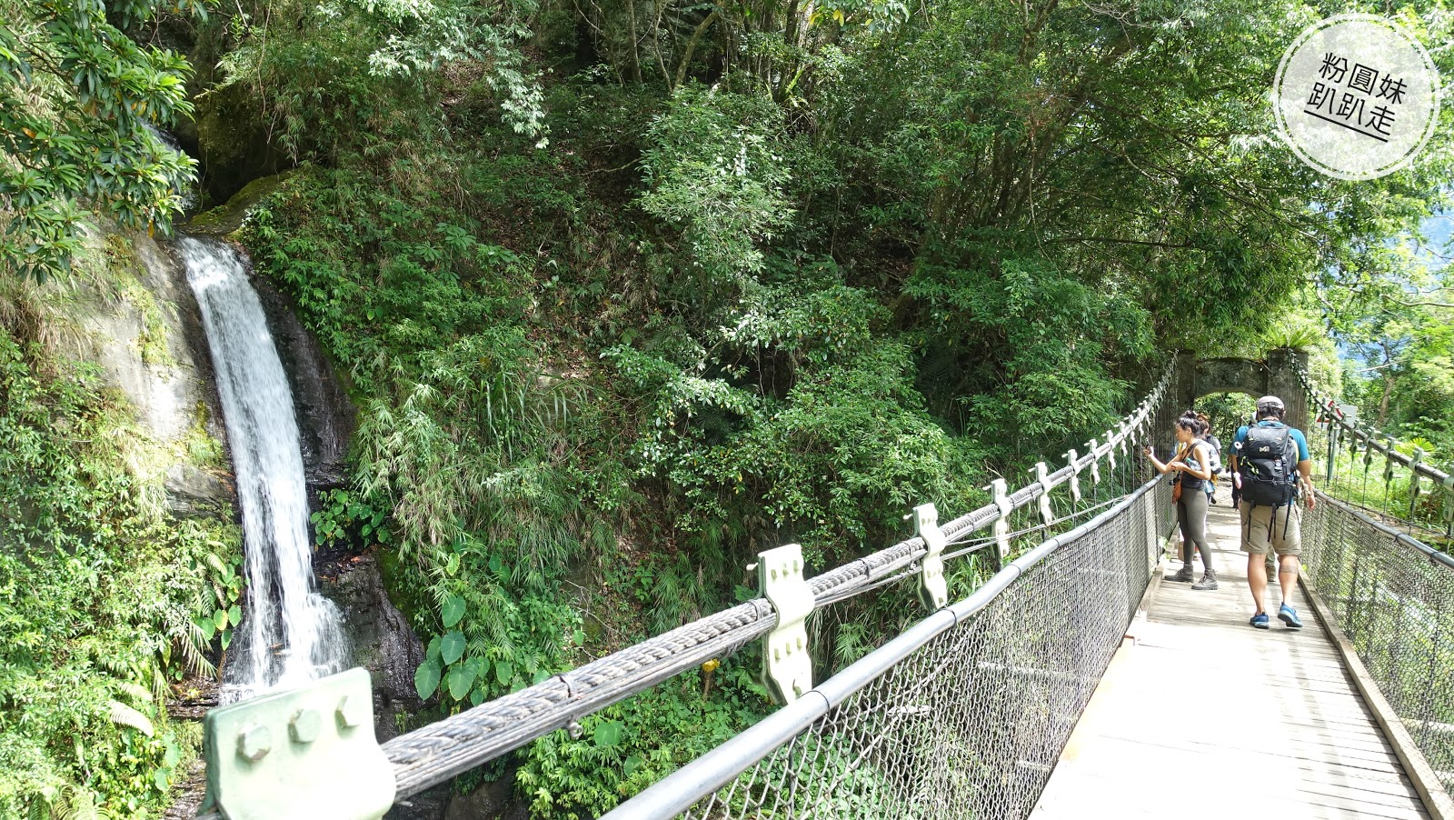 山風二號橋的橋墩十分古意,仍保留日治時期的水泥建物,古今鋼索併存,像跨時代的連結著歷史,山風瀑布位於山風二號吊橋旁,溪水源自大里仙山,經過時一陣風吹拂而來,充滿負離子的沁涼感受。