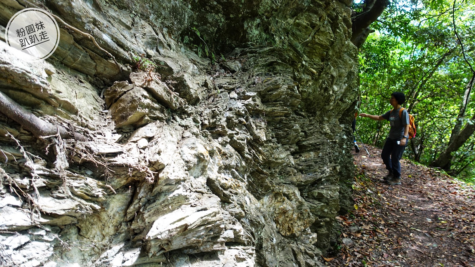 瓦拉米古道有著台灣最古老的岩層,為古生代晚期之變質雜岩,地層單元屬大南澳片岩的太魯閣帶段,注意看岩層裡可以發現亮亮的結晶體岩石。