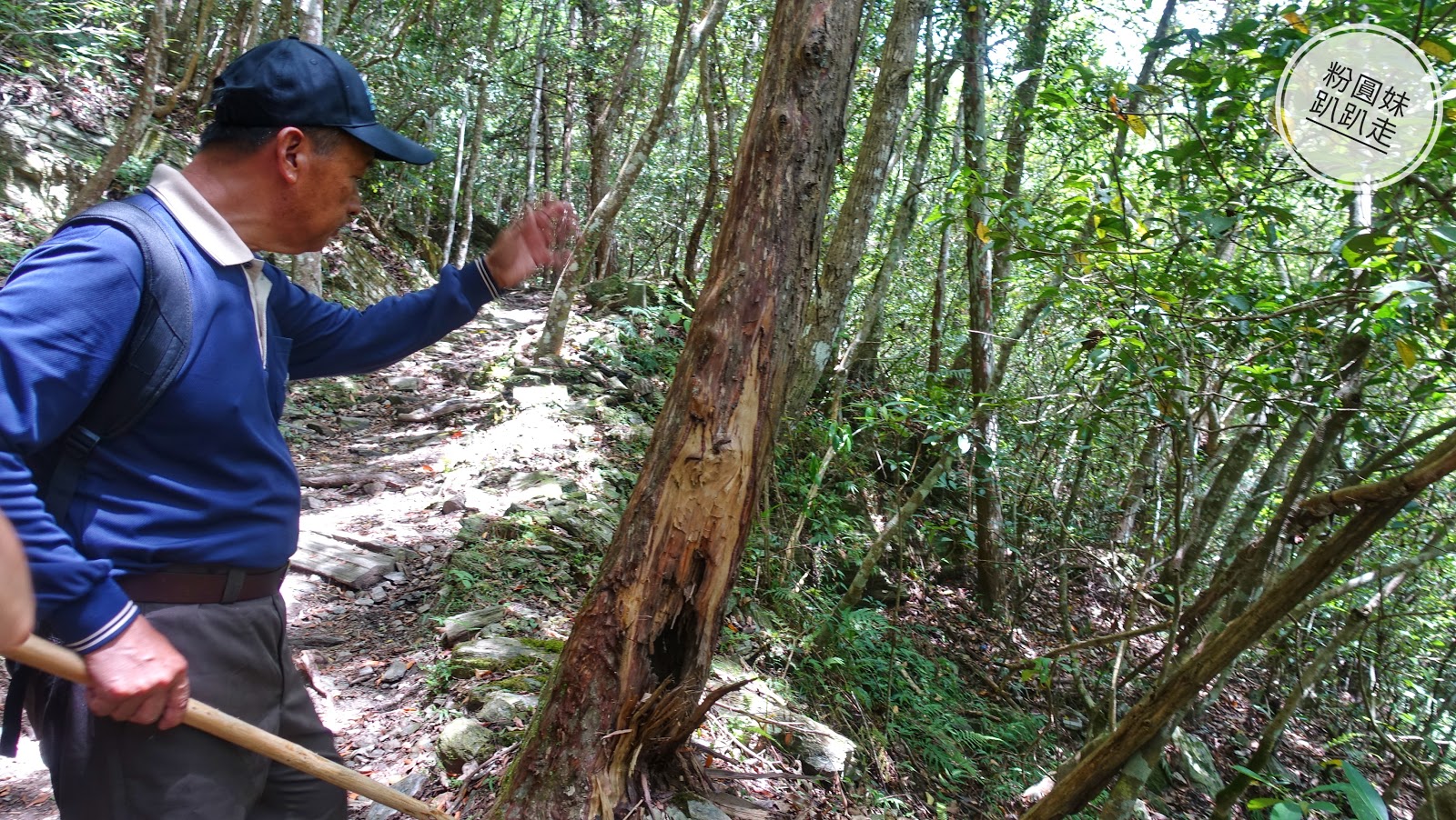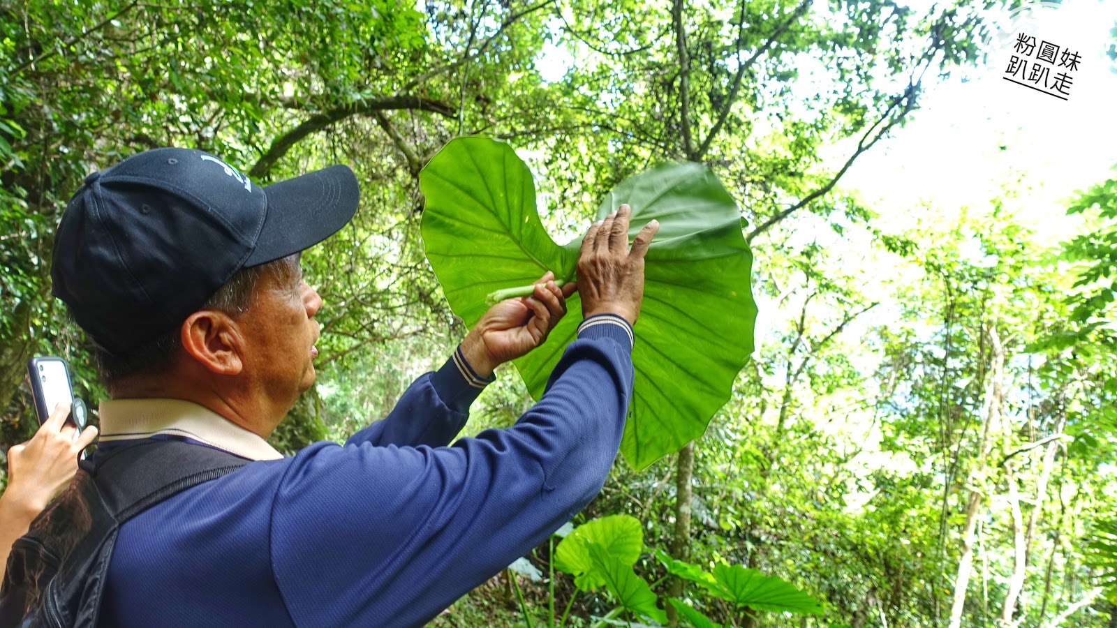 這次特別邀請玉山國家公園高老師負責導覽解說,高老師有豐富的野外知識,沿途帶領我們認識許多植物,可以當成牙刷的植物,用姑婆芋摺成水瓢,以及獼猴、山羊等動物的足跡及獸徑,充滿著原住民的生活智慧,令人嘆為觀止,透過老師的介紹,我們宛如進入深山寶庫之中。
