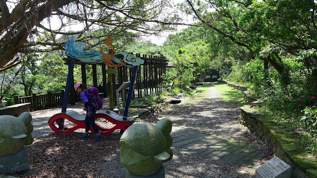 回到步道,續行不用10分鐘就可到鯉魚主峰涼亭,沿途有許多小人國般的造景藝術,雖不精緻但小巧可愛,為劉先生花15年無償製作,請大家觀賞之餘也要愛惜。