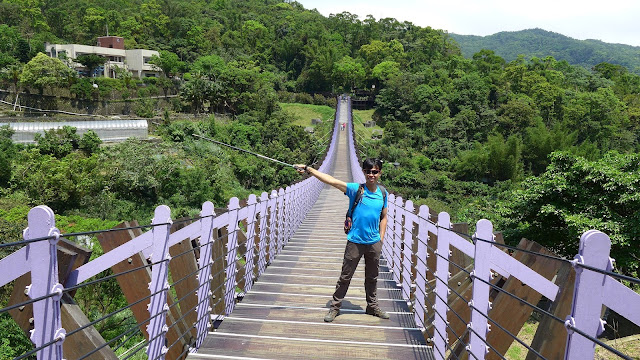 原路退到吊橋叉路,前往白石湖吊橋,紫色的橋身為其特色,設計上跟天梯吊橋有點類似,運氣好到的時候,沒什麼人。