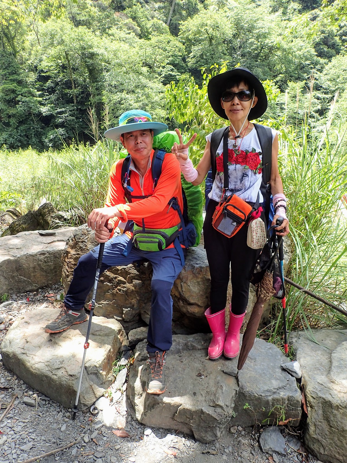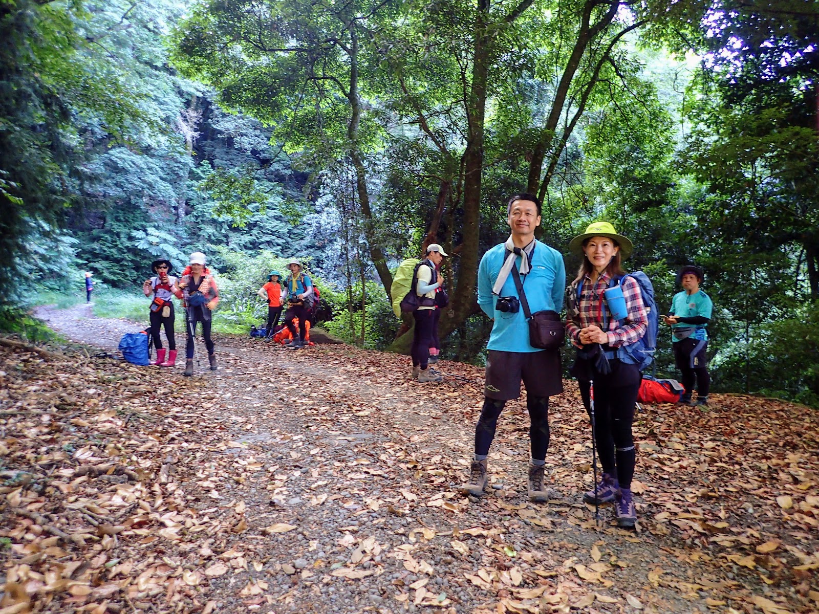 每隔一段時間停下腳步讓大家休息, 琴妹抓緊時間與主揪陳教授合拍, 謝謝教授帶我們一起同行