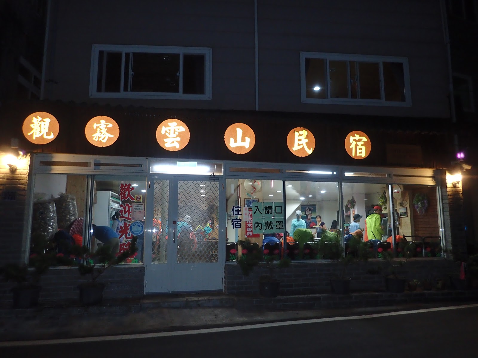 day 1, 19:00 北科大側門集合, 23:00 抵達觀霧雲山民宿, 整理好要帶的裝備後早早入睡, 不需要的暫放民宿