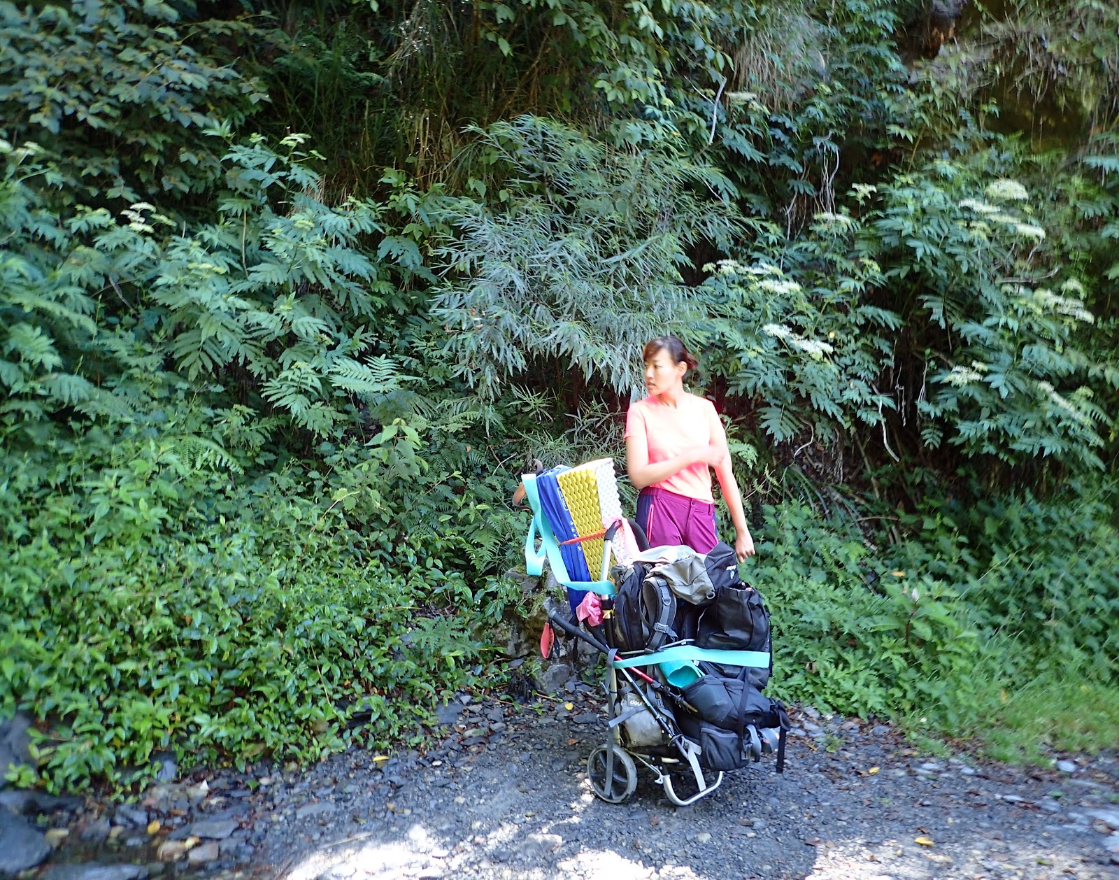 踢了一天也疲了, 加上上坡難行, 實在跟不上大家的腳步, 眼看著琴妹越走越遠, 還好有教授押隊伴行