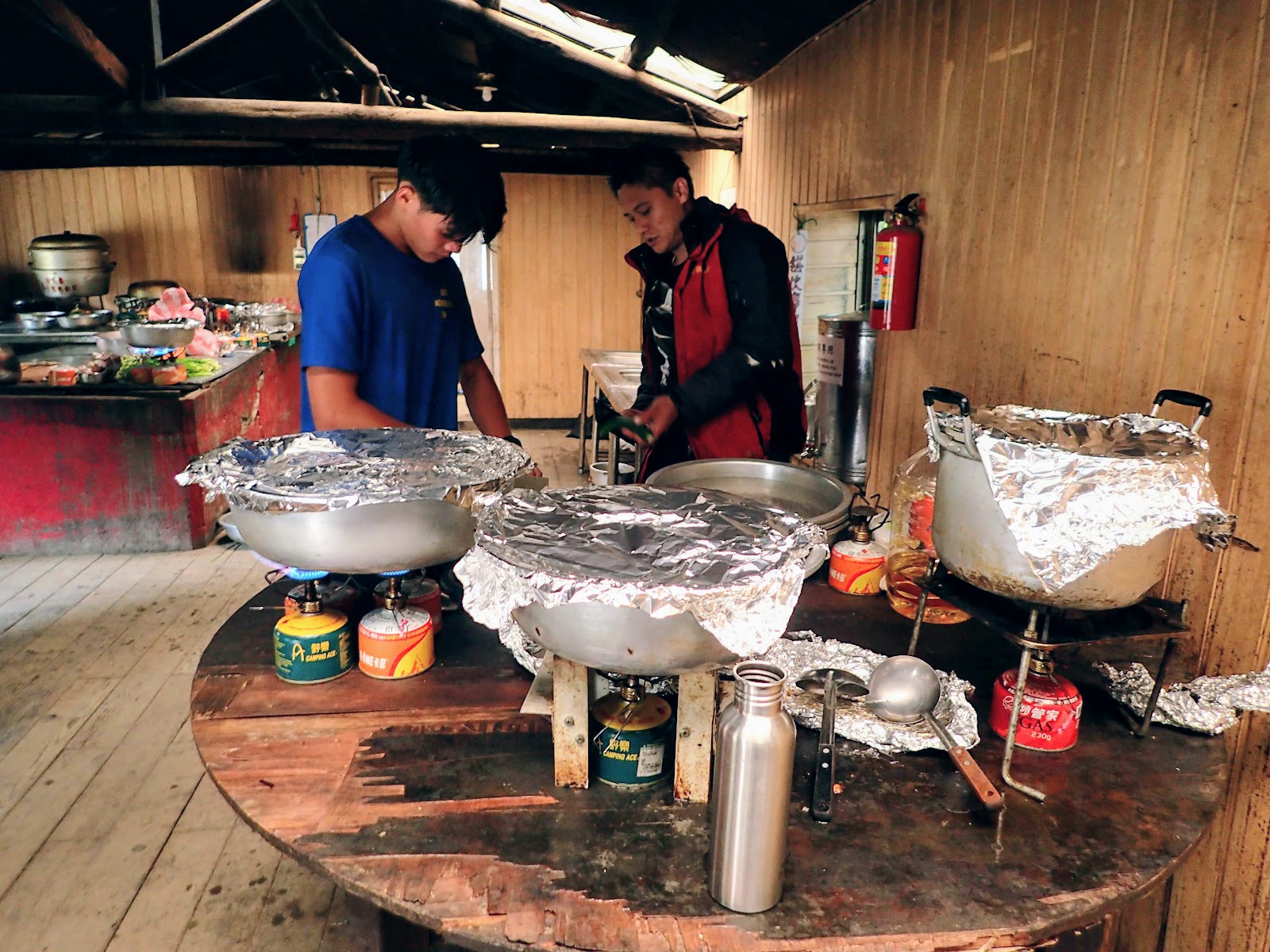拖著疲憊僵硬的身體回山莊大通鋪, 整理一下要帶的裝備, 餐廳用餐後早早入睡, 哎呀, 還有兩天的硬仗要打呢...