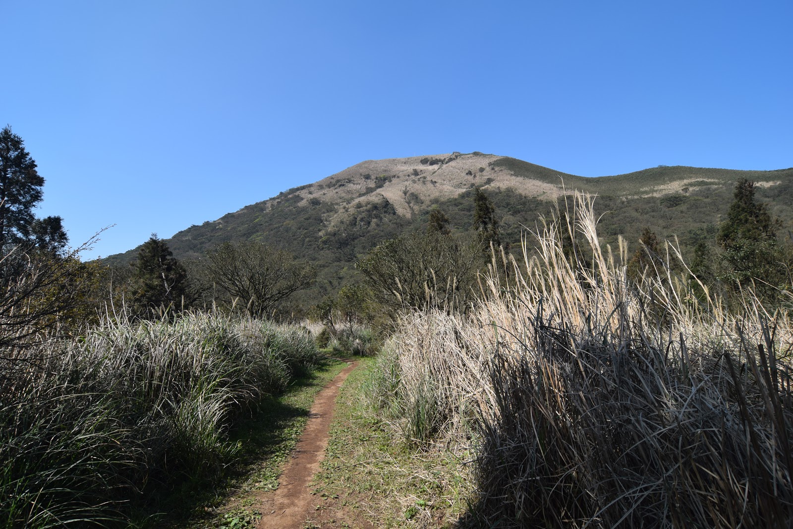 -一路直線陡上後地勢平坦,植柀也變成芒草區。