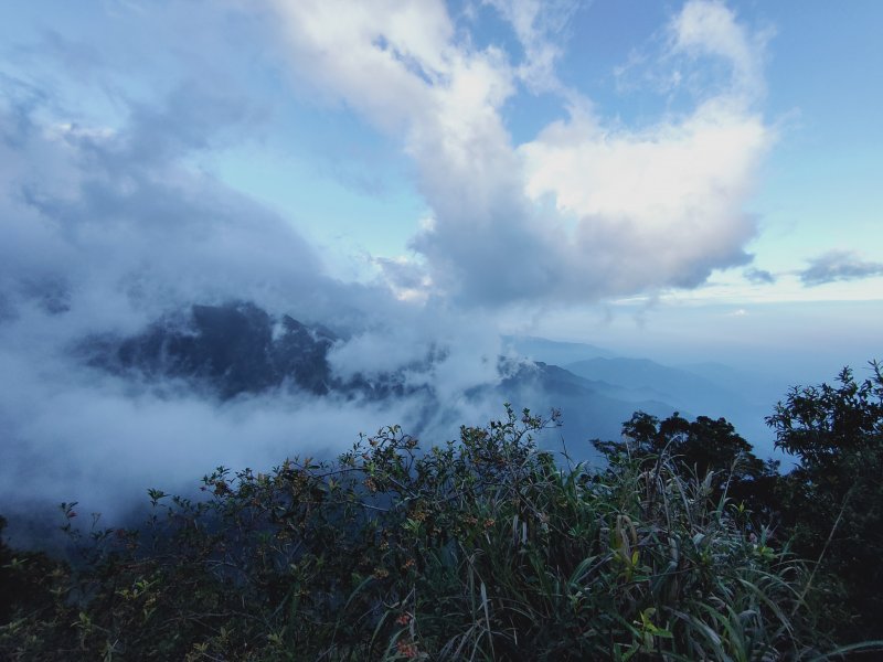 早安,北大武山的晨曦迎接著單攻的我們,這是位於檜谷山莊附近的喜多麗斷崖,也是拍攝欣賞雲海的最佳地,可惜的是今天就只有這個景,後面都僅有一片白牆