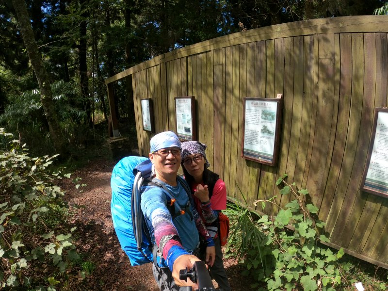 5k涼亭往上,延階梯上行一小段,叁觀新山國小遺址,日遽時代,這可是只有日本小孩才能上的貴族學校,現今只剩一堵木造圍牆,牆面上掛著歷史解說牌,只能意會當年伐木時代繁華盛狀了