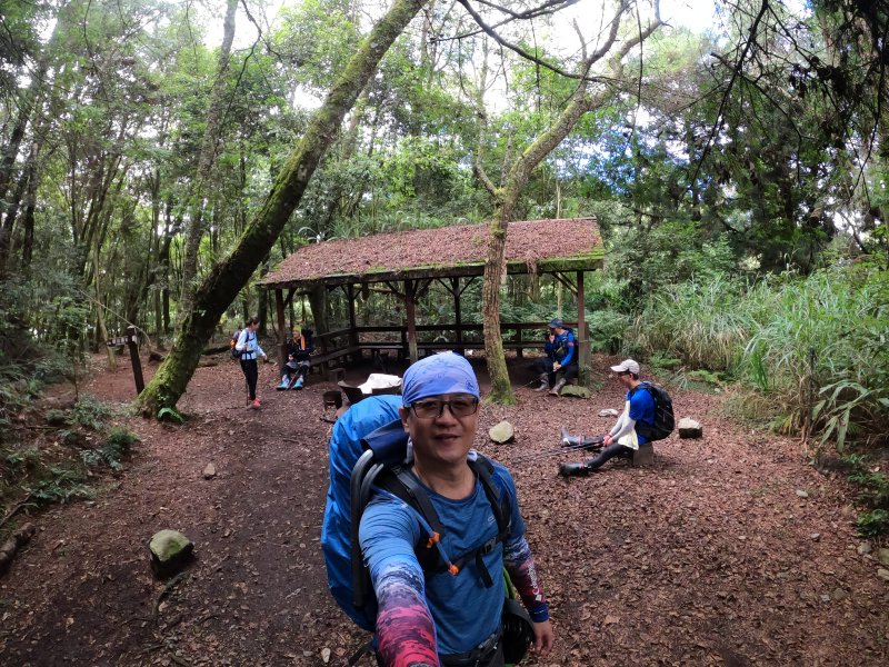 12:34到達6.5k第三涼亭,剩最後500公尺就可登頂馬崙山了,但同學們經過一路陡坡摧殘,以手軟腳殘,在也沒力攻頂了,順應民情,決定大休吃中餐放飯.....鼓掌