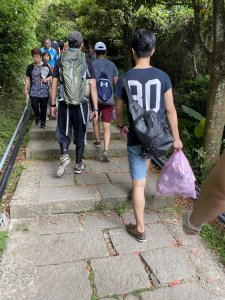 真的很好~ 然後 我們覺得也不能輸他們 我們就加足馬力,超越他們 然後慢慢的尋找垃圾 好不容易QAQ 總算撿到ㄧ些小垃圾了!! (但若是可以的話 可能還是不希望會看到垃圾) 走著走著~ 我們就準備要登上硬漢嶺了~ 覺得開心