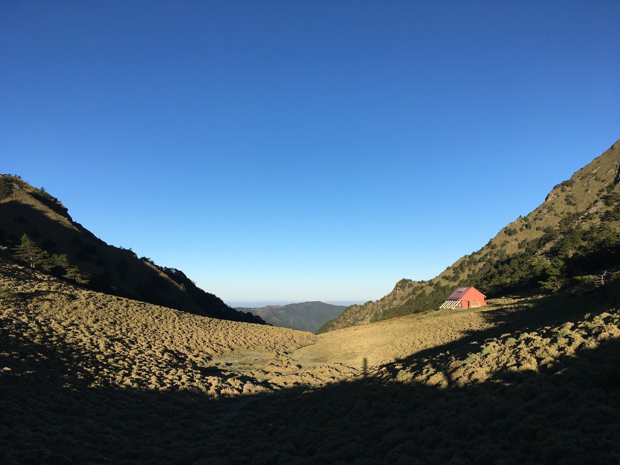 D5也是行進時間較少的一天,上去塔芬尖山後經過南大水窟山,住在大水窟山屋。通過塔芬尖山後幾乎整天都走在開闊的箭竹草坡中,南大水窟山雖然不是百岳不過風景絕佳,東邊寬闊的草坡也很適合晃晃,大水窟山屋附近有大水窟駐在所,來回約一個小時,有多的時間可以考慮去晃晃,甚至四周的山丘都是很值得閒晃的點,當天的風景是我認為南二段中最好的。