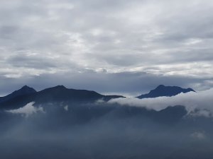 休息了一下,原本右邊的雲霧已開始慢慢向左移,是該下山了。