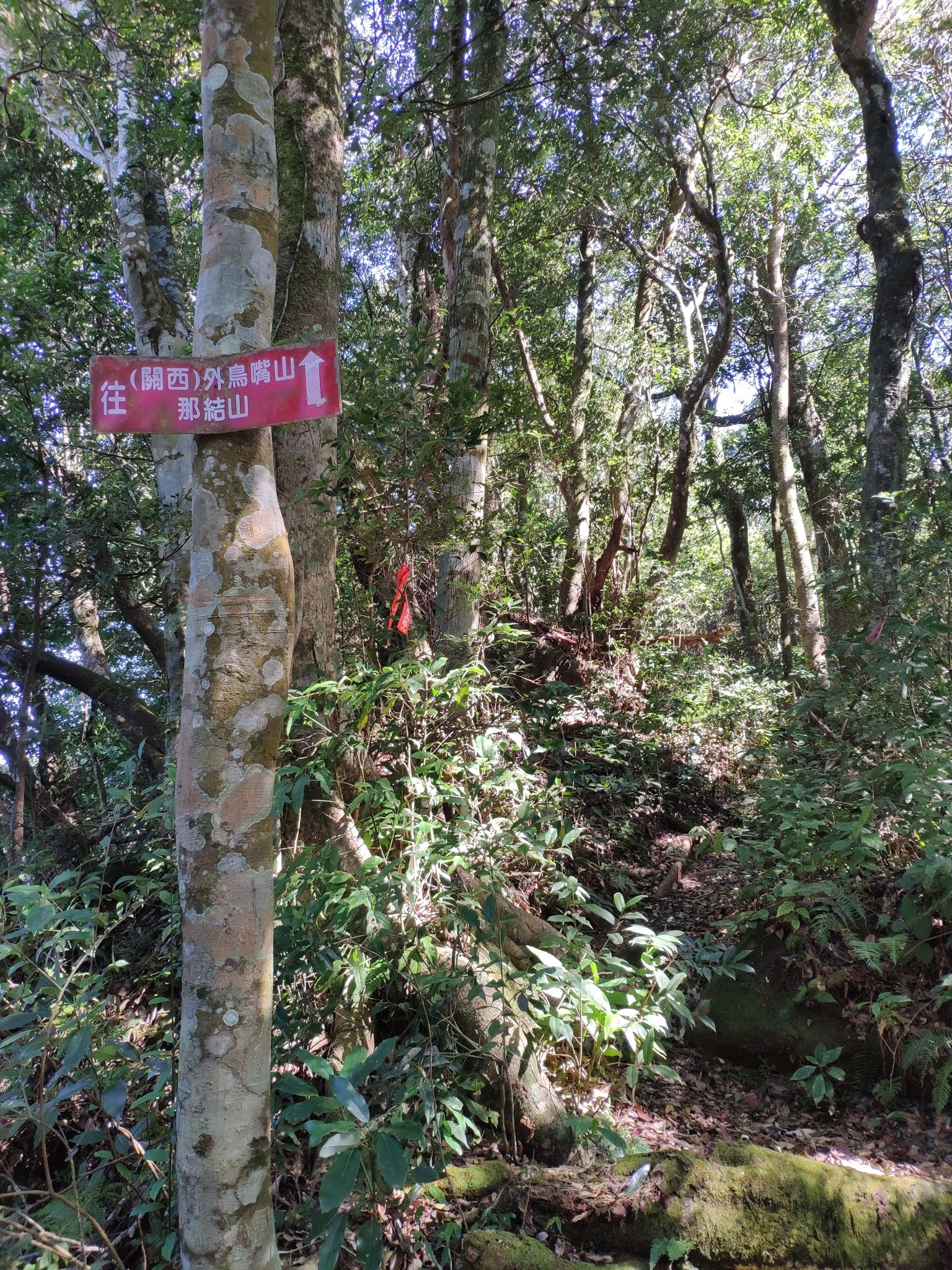 想想已經爬過鳶山彩壁、鳶嘴山和內鳥嘴山,還有「鵝比鳥大」的鵝公髻山。這次來到關西馬武督森林,裡面隱藏著外鳥嘴山的登山口,若無登山習慣的山友,切勿從這裡向上攀登,因為剛開始就是又濕又滑的杉木林步道,而且一路向上,坡度非常陡,和中級山有著差不多的陡度。