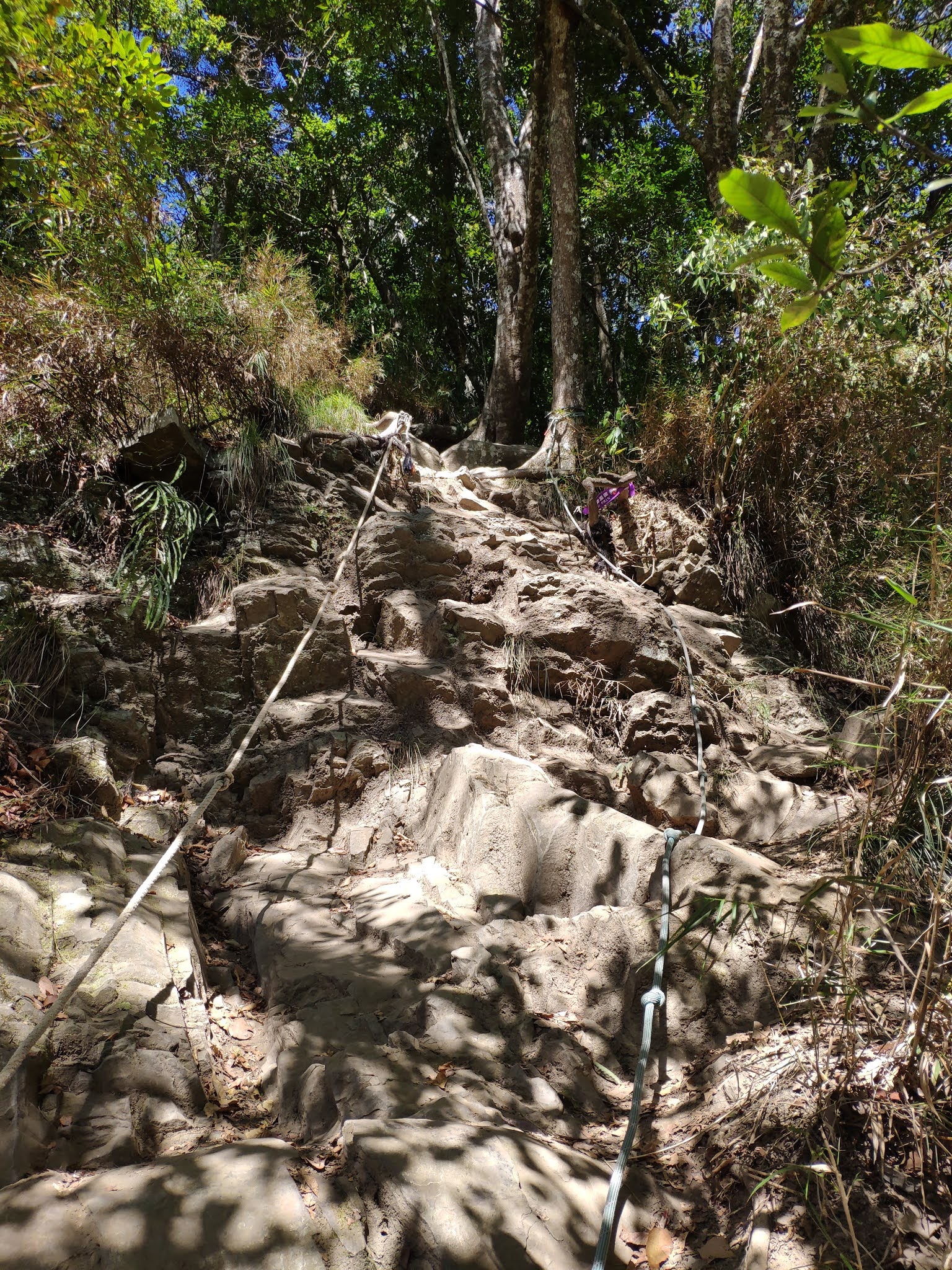 在救援8號點之後,就是最後1公里的攀岩碎石路段