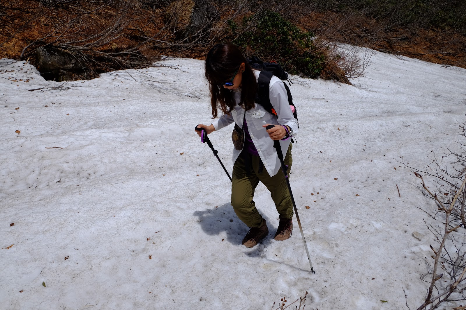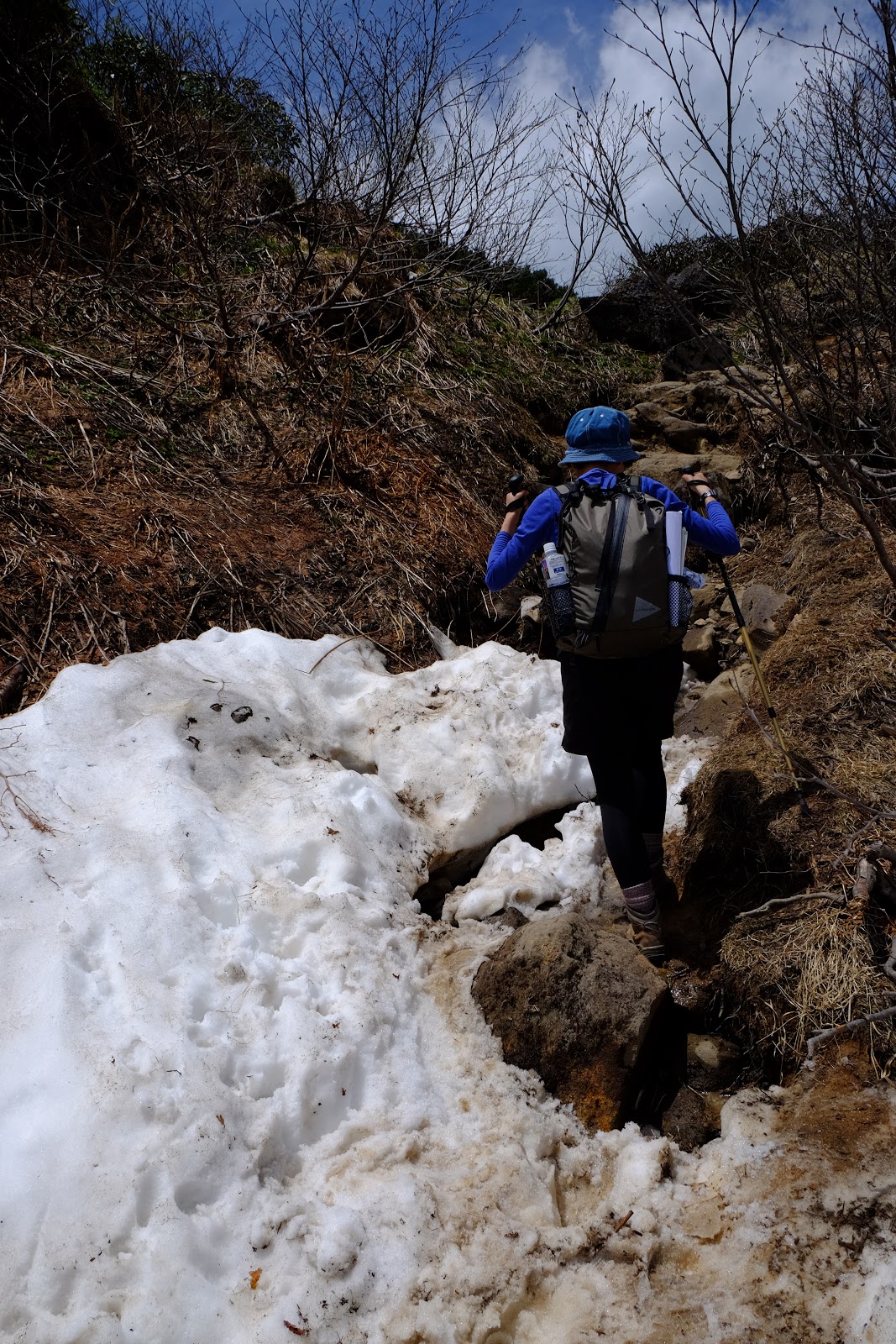 ↑開始有雪溪,因為已經快溶化都踩成冰,有點濕滑