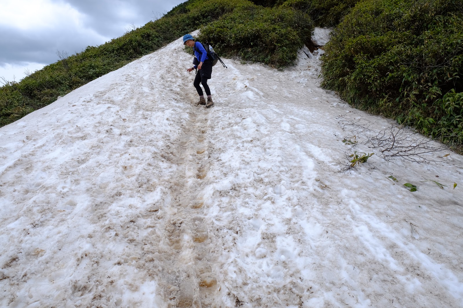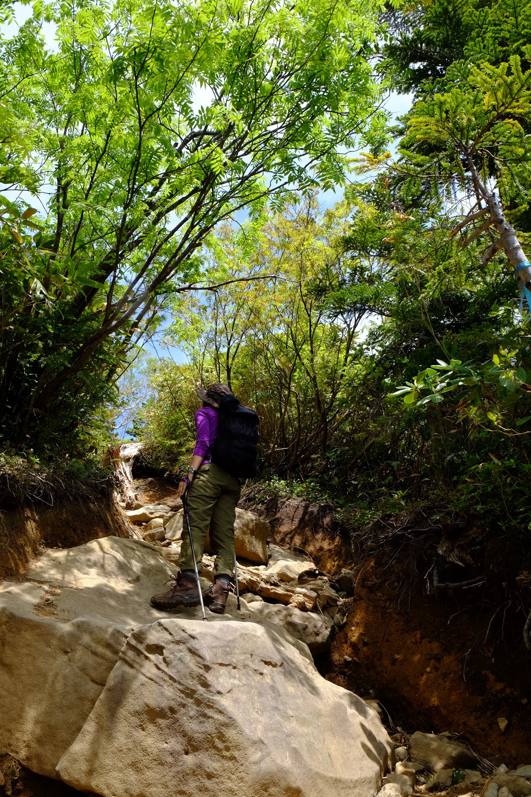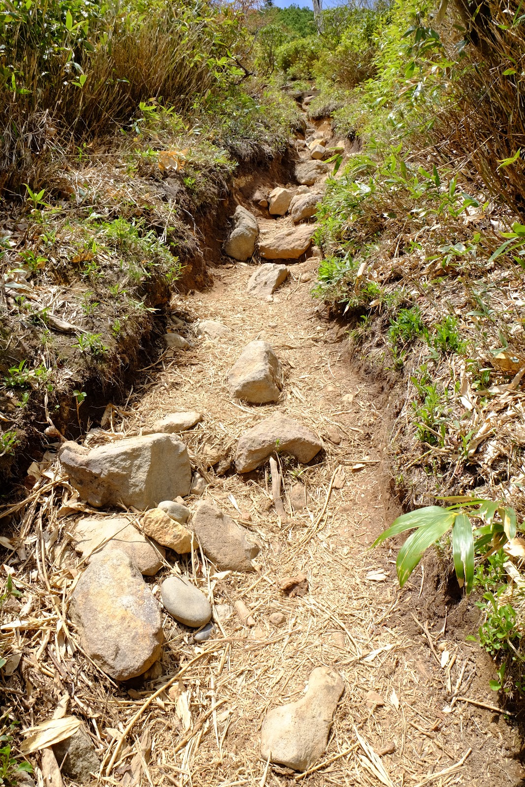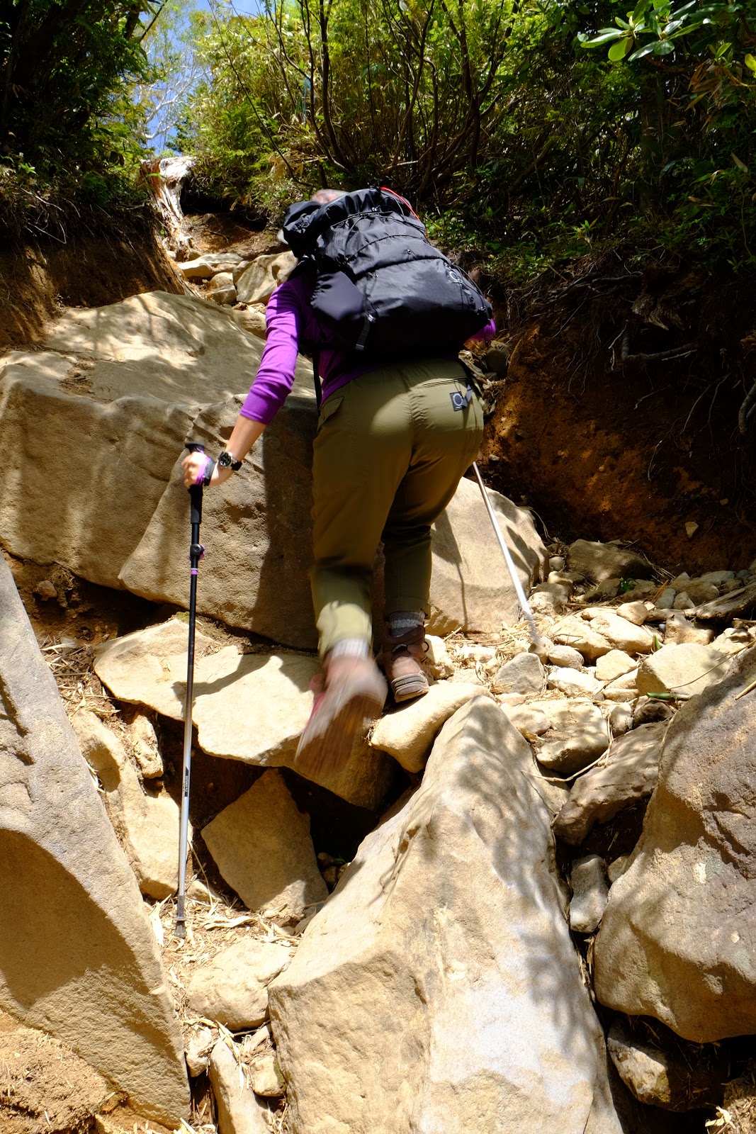 ↑中間很多時候會有大塊的泥石塊,需要走在旁邊的草叢,甚至步道被雪水沖刷到有半個人以上的落差