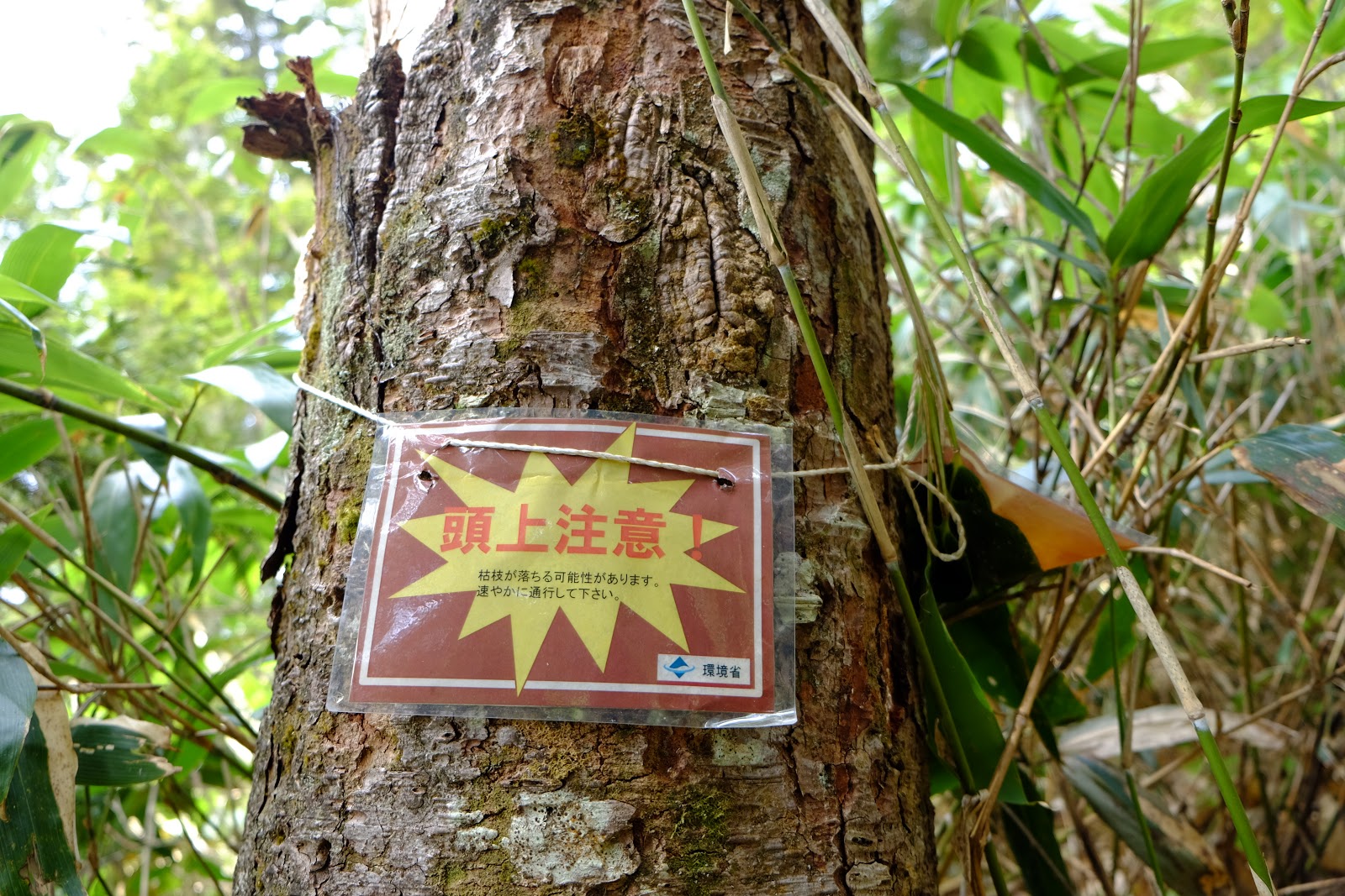 ↑若有頂上有欲斷裂的樹枝會在下方樹幹上貼標示,但不會像台灣的百岳步道會盡量排除,所以林道上有非常多倒塌的樹幹等