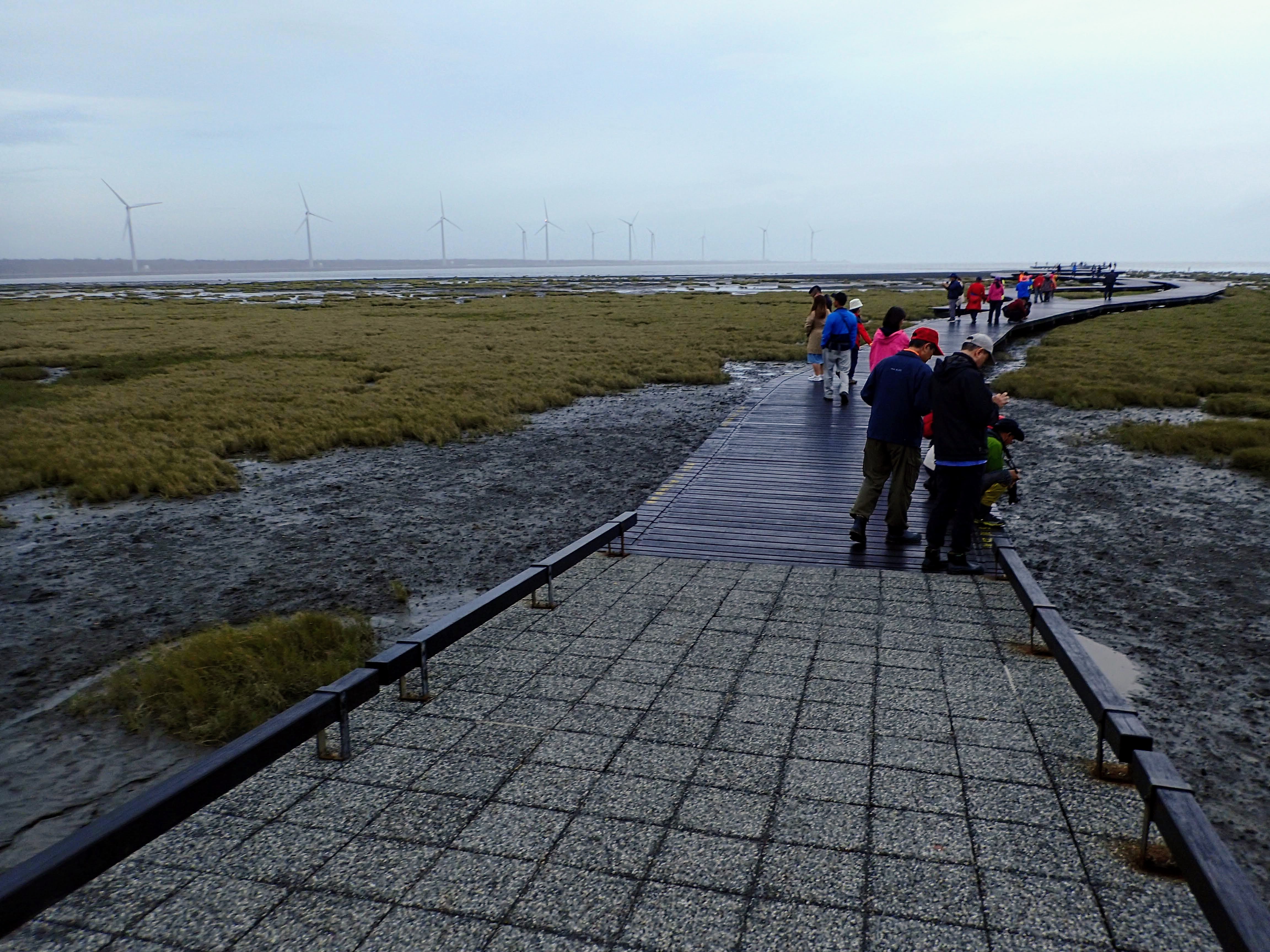 最後一站來到高美濕地, 遊客中心開放時間09:00~18:00, 原本期望能看到夕陽, 呵呵, 想的美, 沒下雨就該偷笑了...美景在前, 隊長帶頭往前衝