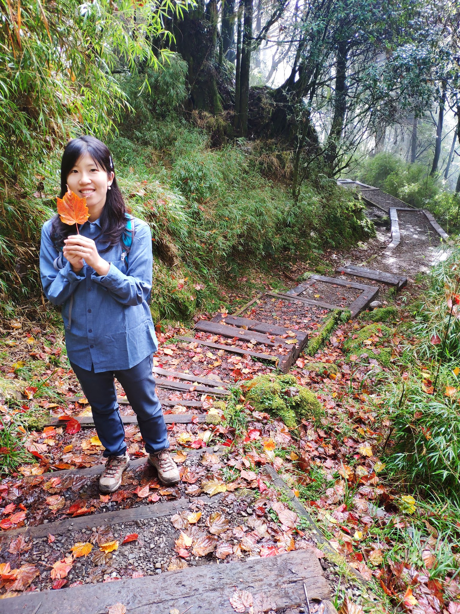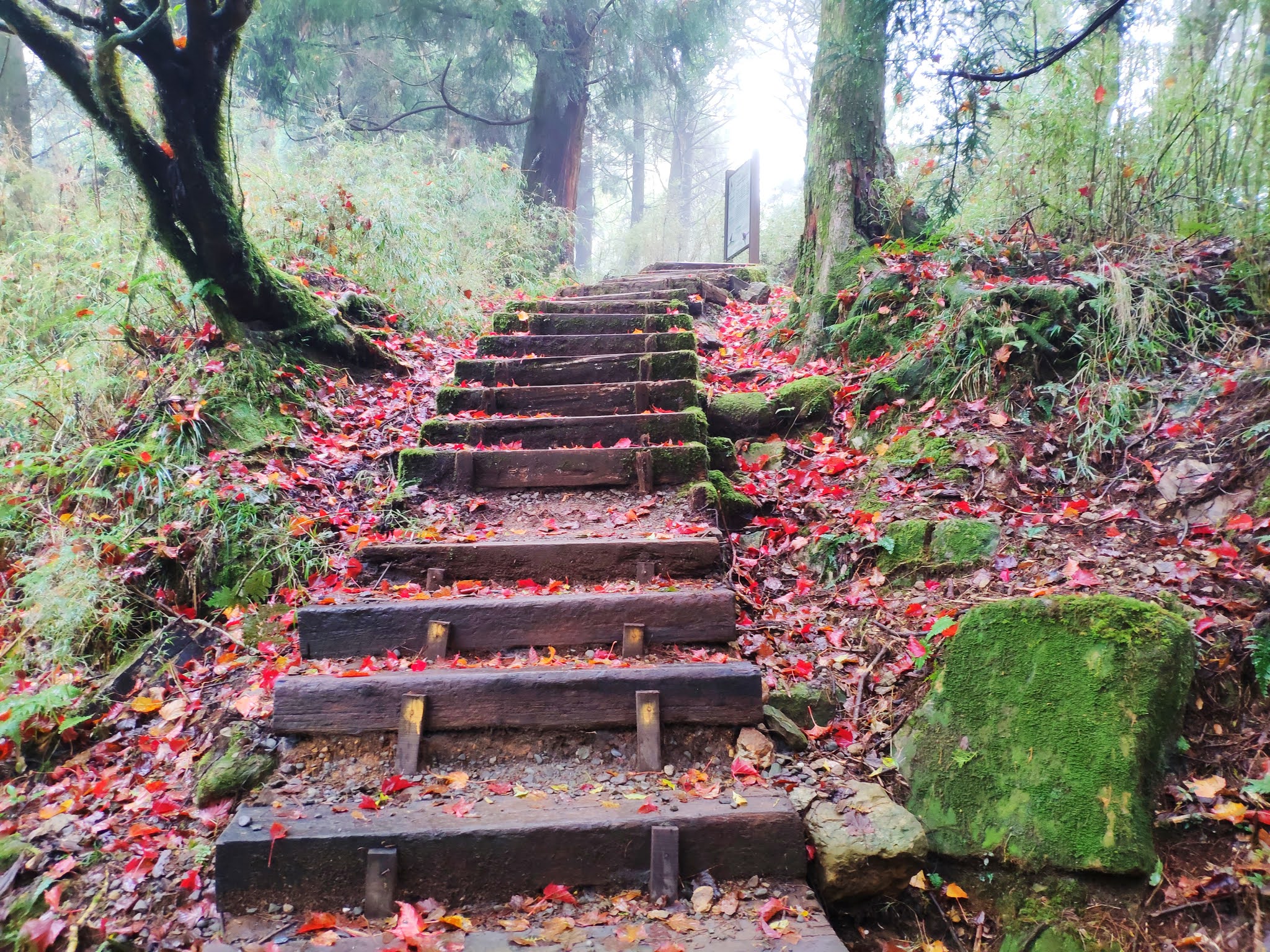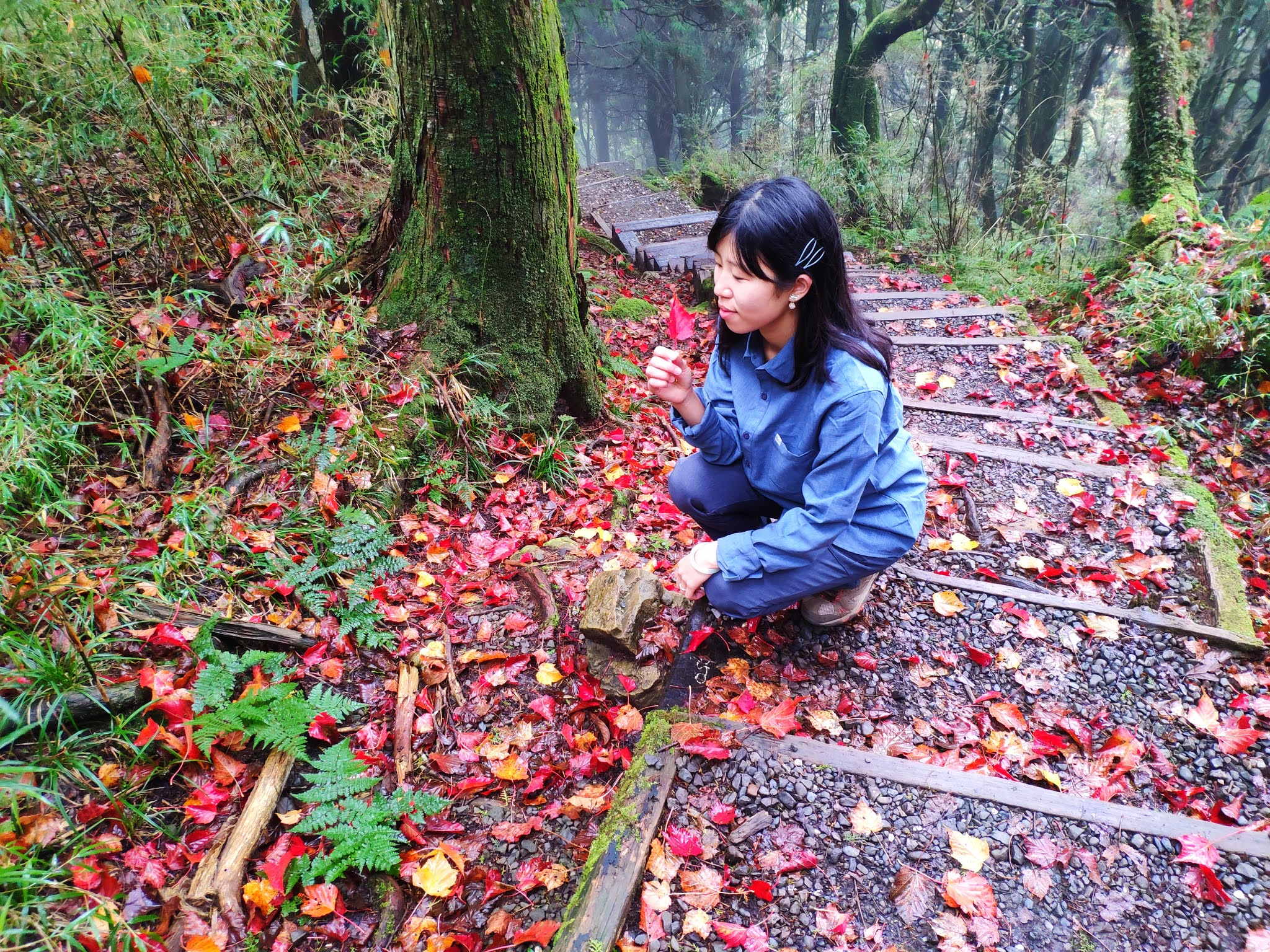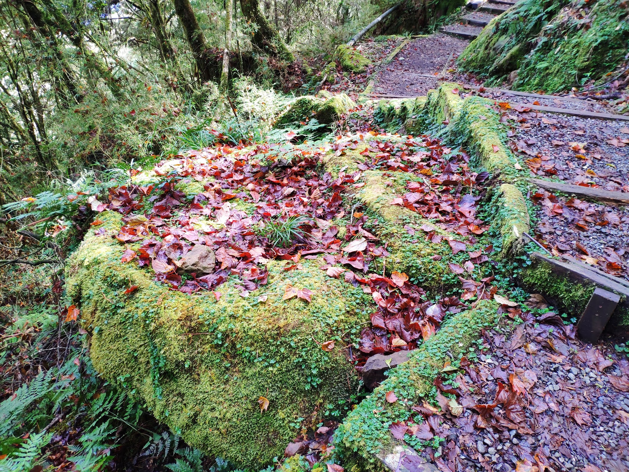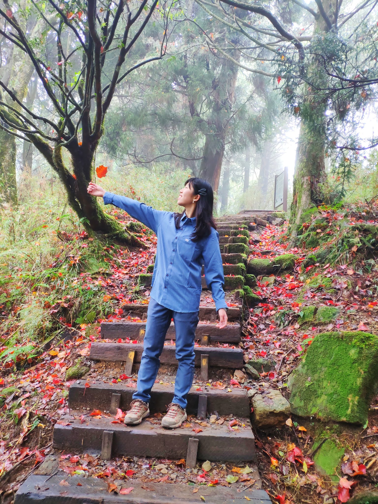 走完塔山步道後,再往阿里山神木方向前進,森之道有楓葉點綴,值得一訪!