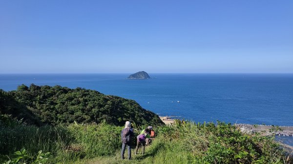 山頂上可以看到八尺門漁港、基隆嶼的景色