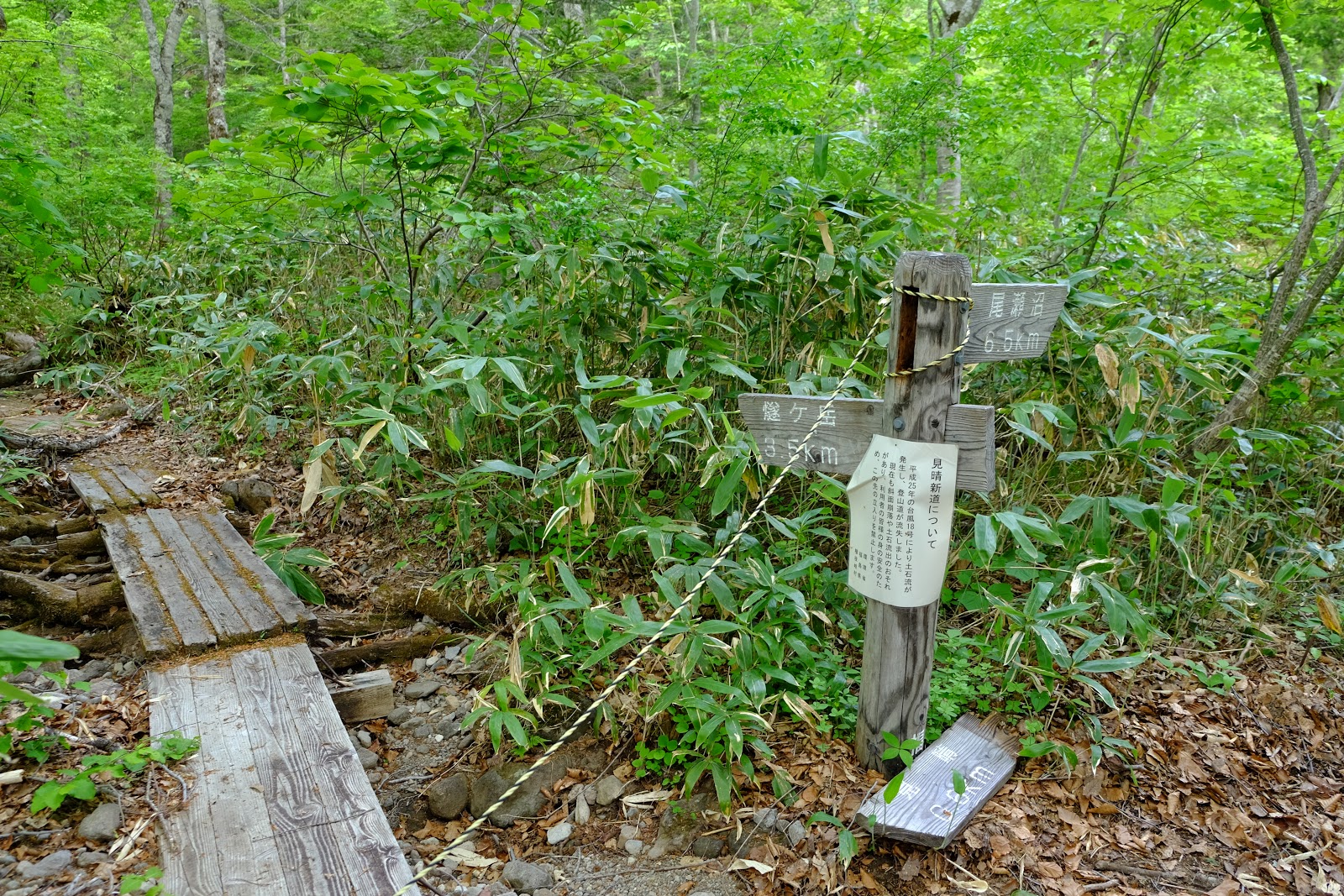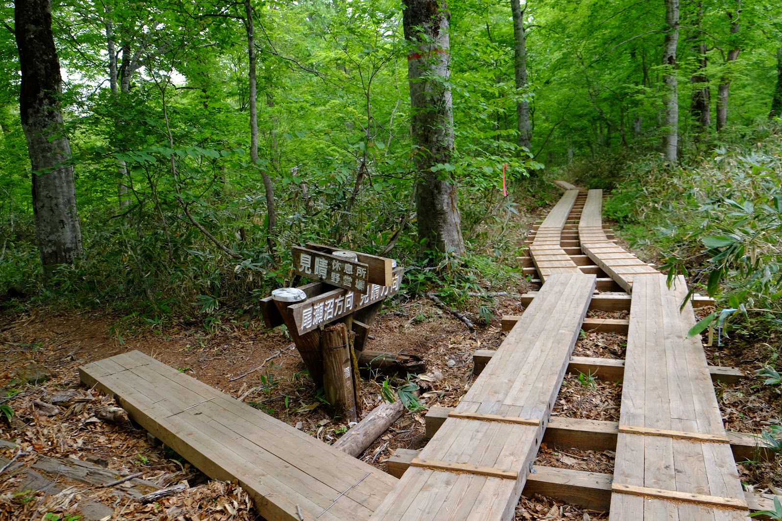 ↑這裡有見晴休憩所往左與尾瀬沼與見晴方向直行兩個指標,如果住在見晴十字路的山小屋就要直行