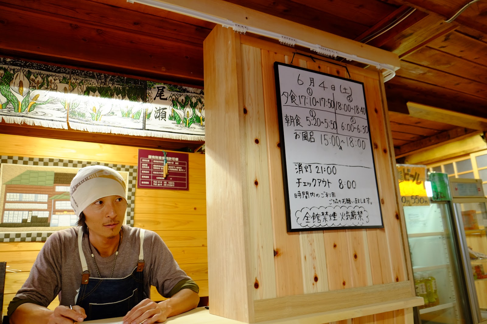 這次我們選擇的是有80幾年歷史的彌四郎小屋,1932年4月在尾瀬開始營建,那時候尾瀬還只是一片沼澤。彌四郎小屋的規模相當的大,共有本館與別館,分別都有個室可以預約。因為預約個室不需要另外加價,所以提早四到五個月客滿是很常見的,這次我們六月初的行程,早在二月多的時候就開始預約個室,雖然沒有能在本館預約到直接面對至傳山展望大景的個室、但在小巧的別館也另有一番風情。