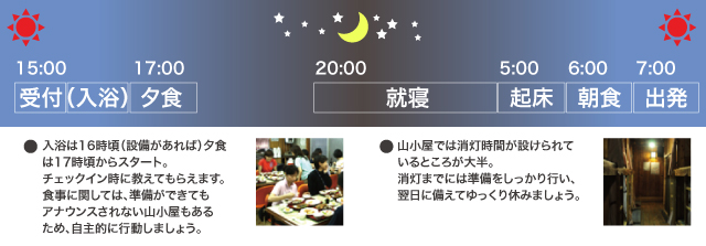 日本大部分的山小屋時間規定: