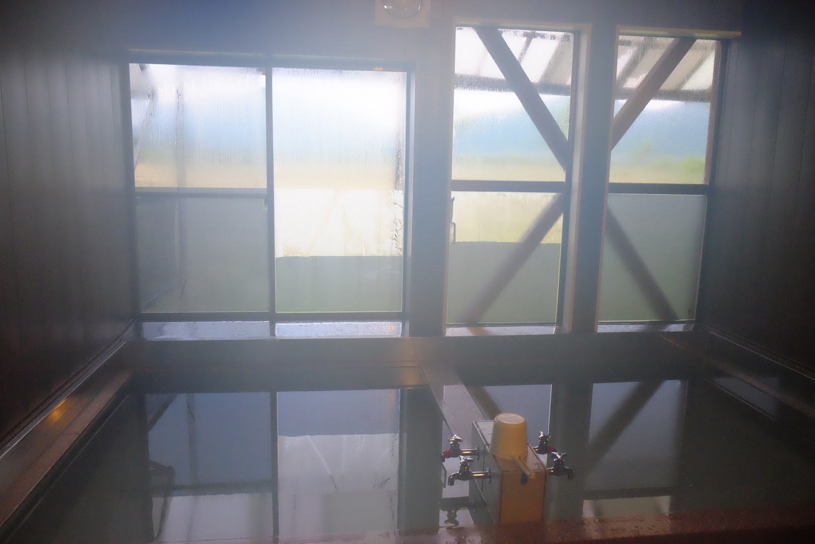 ↑有兩個大浴池,溫度一樣都非常舒適。不是溫泉而是燒熱的熱水,但不知道是用木柴燒還是瓦斯