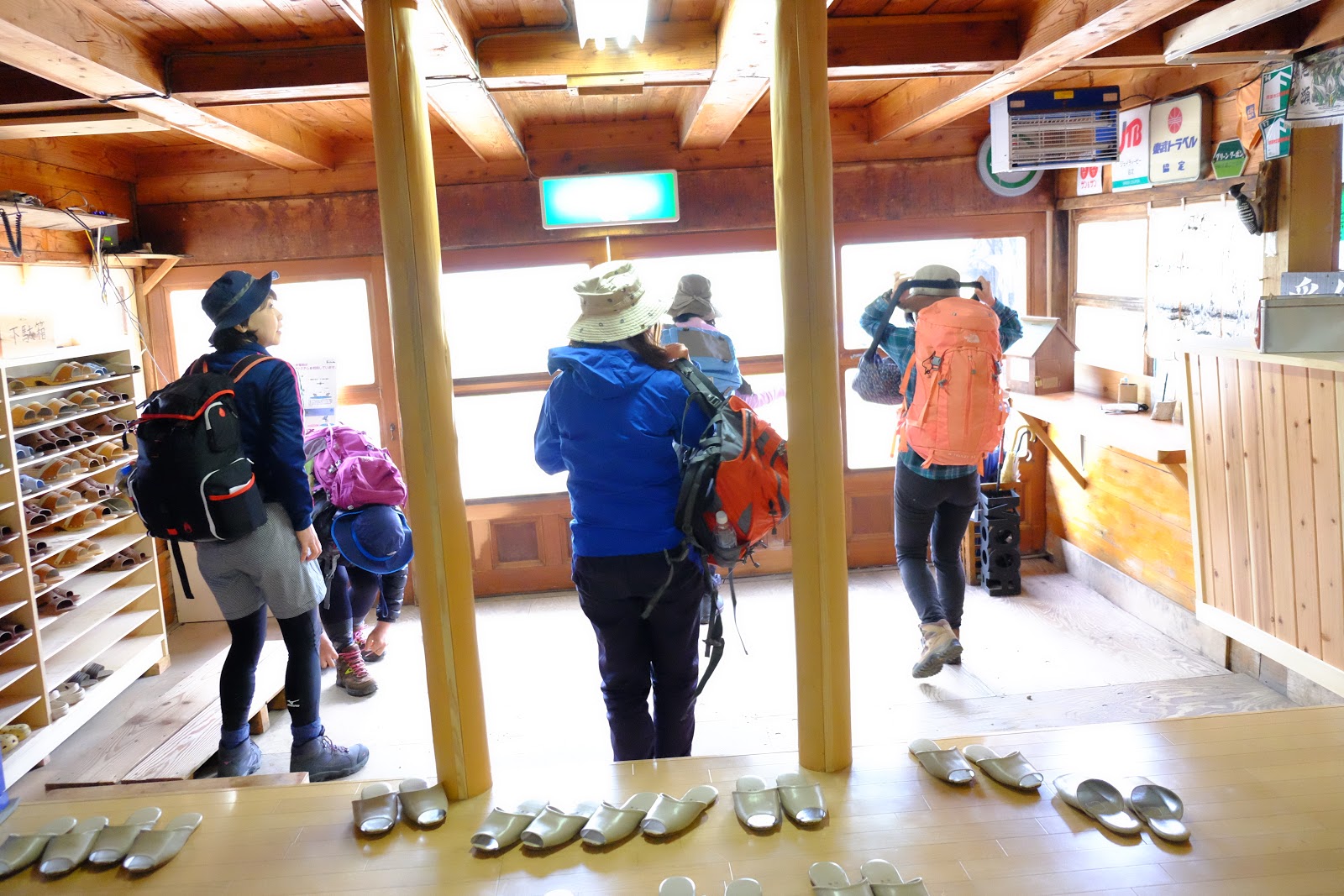 ↑晚上18:15抵達彌四郎小屋,先要拖鞋到受付處窗口check in
