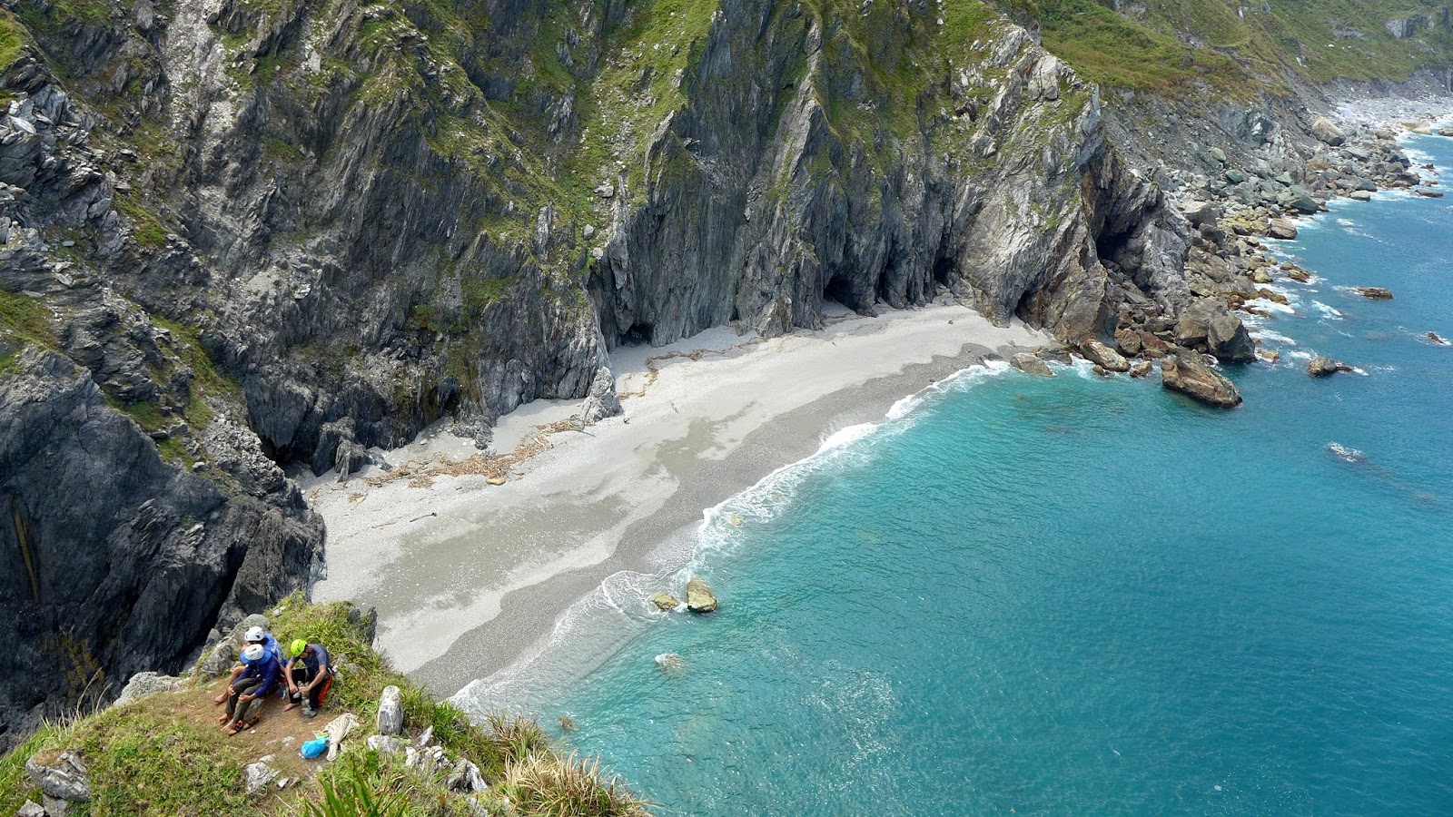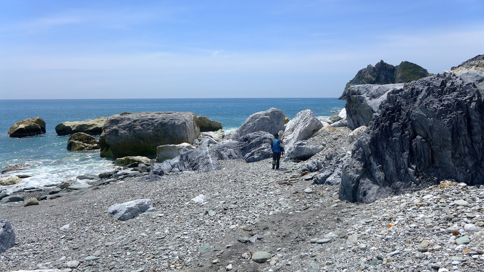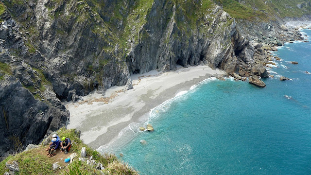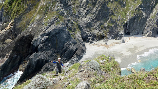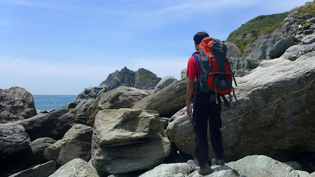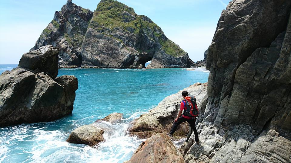 心心念念2年多的地方,終於在幾位朋友時間騰出來,一同前往,前一晚借宿郭寶家,隔天一早往下切點,烏岩角去的方式很多種,划獨木舟、坐船、步行,我們採取步行一日來回方式,背了大包小包裝備繩索等,於明隧道口整完裝,一開始就要下降近300M的落差到海灘。