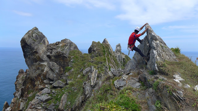 烏岩角嚴格來說還不完全算攀岩,不過要上去一開始的地方有一處懸空落差稍難外,其他還好,上去之後其實就跟一般登山路徑無異,其實許多郊山或高山的瘦稜、岩稜等難度還要比這更難。