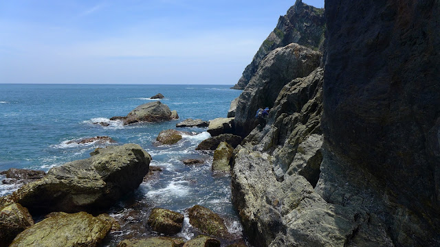 退回起攀處躲陰影休一會,繼續出發,目前還在退潮時間,所以浪不太會打到身體,不過偶爾還是會有1~2波較大的,自己算好時間,這邊直接繞算好踩好走,通過容易。