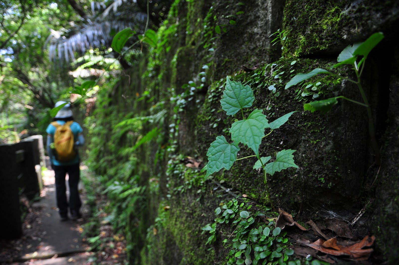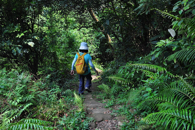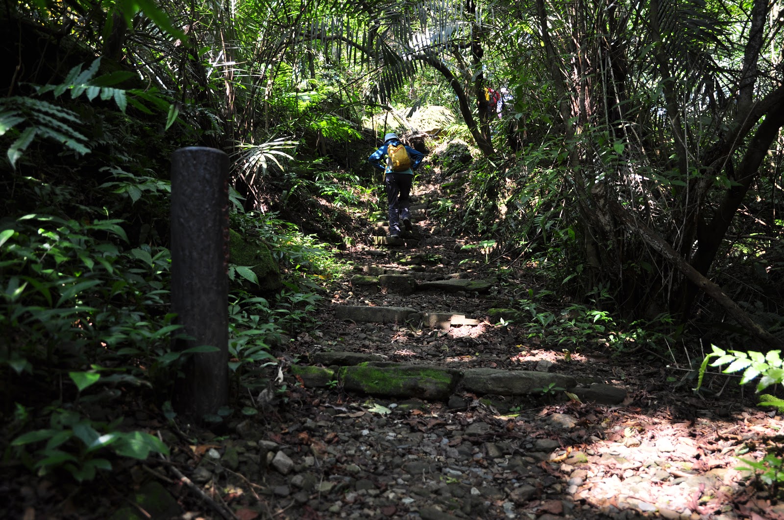 這砌石步道顧名思義就是 石頭路, 不規則的石頭堆砌且青苔在其上有點滑要小心