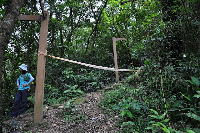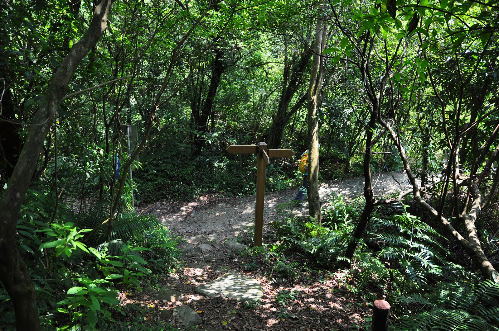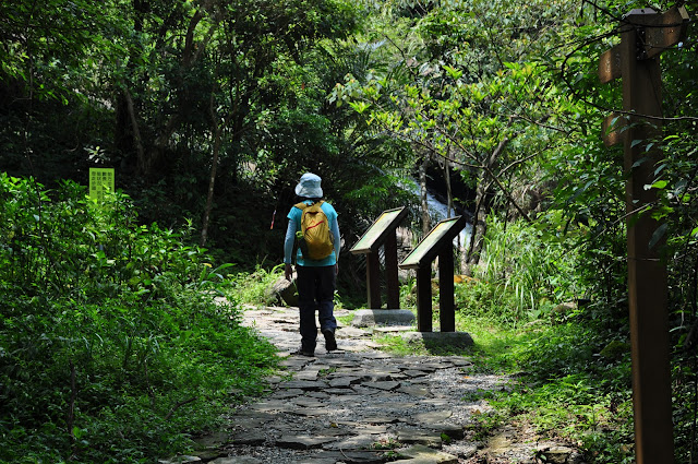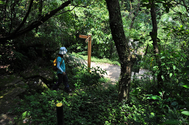 續前行來到這叉路口, 往右為 "砌石步道" , 左為 "滑瀑步道" (皆為黃圈路線) 先不走