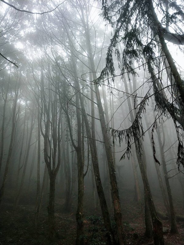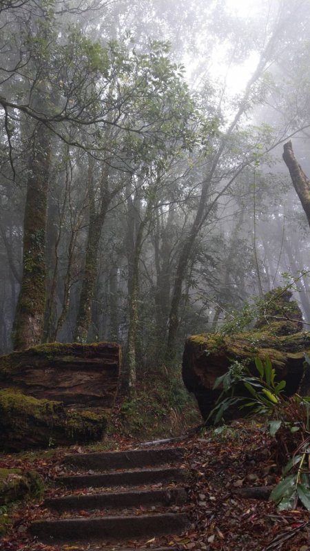稍來山步道登山口就在收費站一進門的左邊,踏上步道的感覺真好,果真是國家級的,整理的十分乾凈、林相優美,雖然霧茫茫,然而增添了幾許靜瑟淒美,垂吊的樹藤,像極了美女的長睫毛,忍不住駐足凝望,引人遐想.無料一陣的冷風吹來,吹醒了腦袋,顫動了身子,是該繼續的前進了.