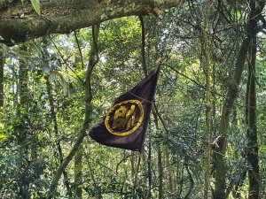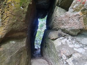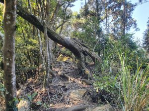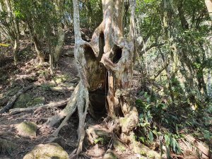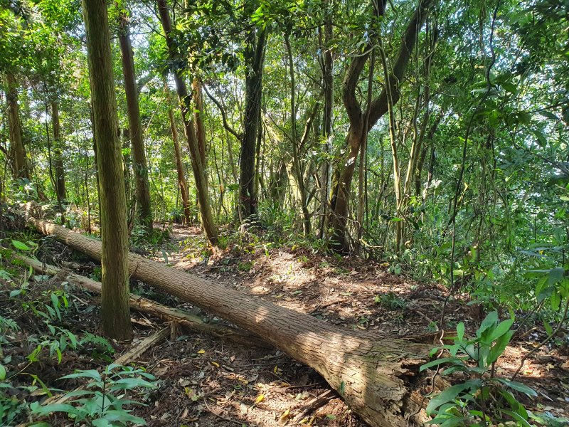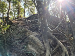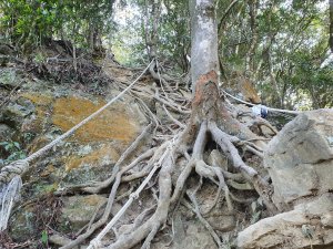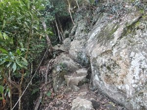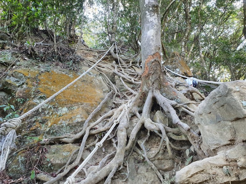 在指示牌300m的地方(小東河救援樁編號1),看網路資訊,拉繩陡上一小時可到小東河北峰三角點,二小時可到小東河山三角點。(在現場時沒查到資訊,就沒上去了)