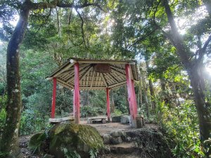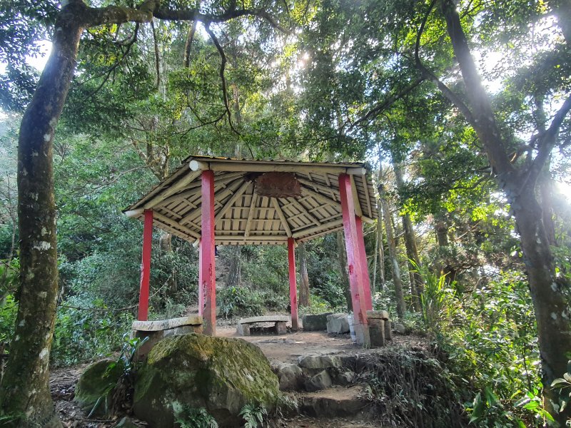 過涼亭後,直接垂直上升,因為前面塞車,就在涼亭休息一下,等沒人再出發。(這邊不好爬,需收起登山杖,戴手套上去。)