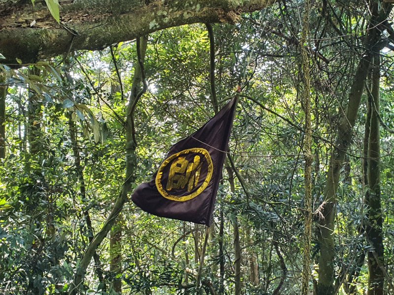 這牌子應該很久了,目前八仙古道走到出口,沿途都有拉繩,跟著繩子走就好。