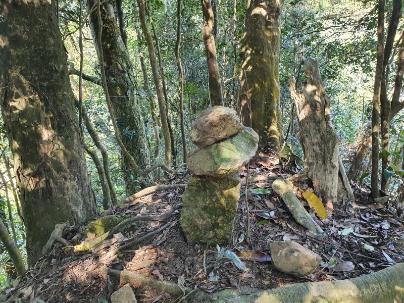 沒有看到三角點,不知誰用三顆石頭堆疊代替。