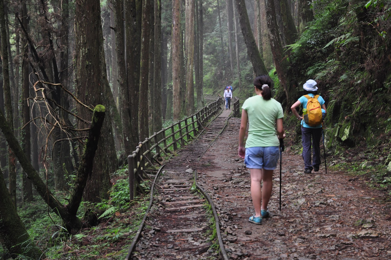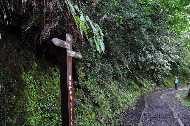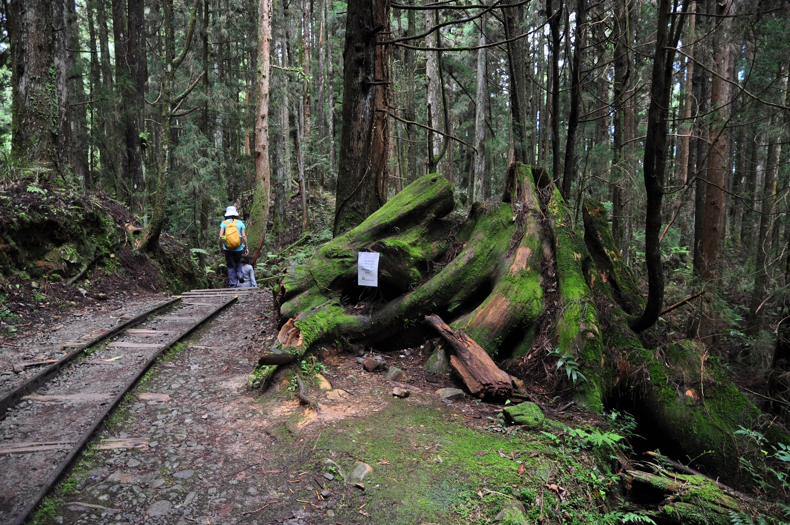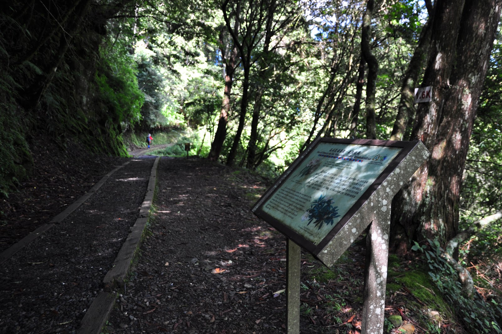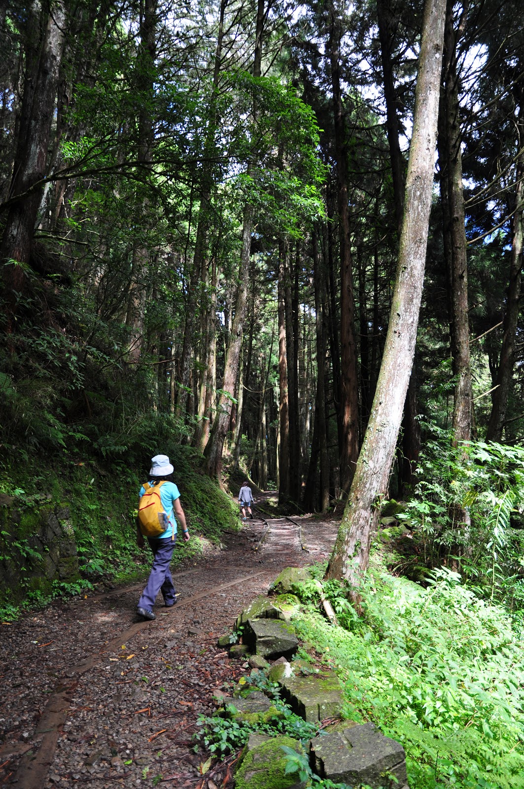 由嘉義阿里山鄉自忠的入口處海拔高度約為2280m進入, 全長6.32km出口在特富野,如不原路往返就必須兩地接駁, 我們選擇原路來回因此走了約13km, 此古道的前3.7km 皆是平坦且寬的碎石泥土路再加上火車軌道與橋樑, 林相為人造的柳杉林偶有大樹頭真優美, 過3.7km就是向下的階梯步道直到出口特富野處海拔約為1780m, 林相到此也漸漸改成闊葉林 , 所以後2.6km共下降了500m高度左右, 去程沒啥感覺, 回程時就必須還債了