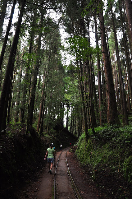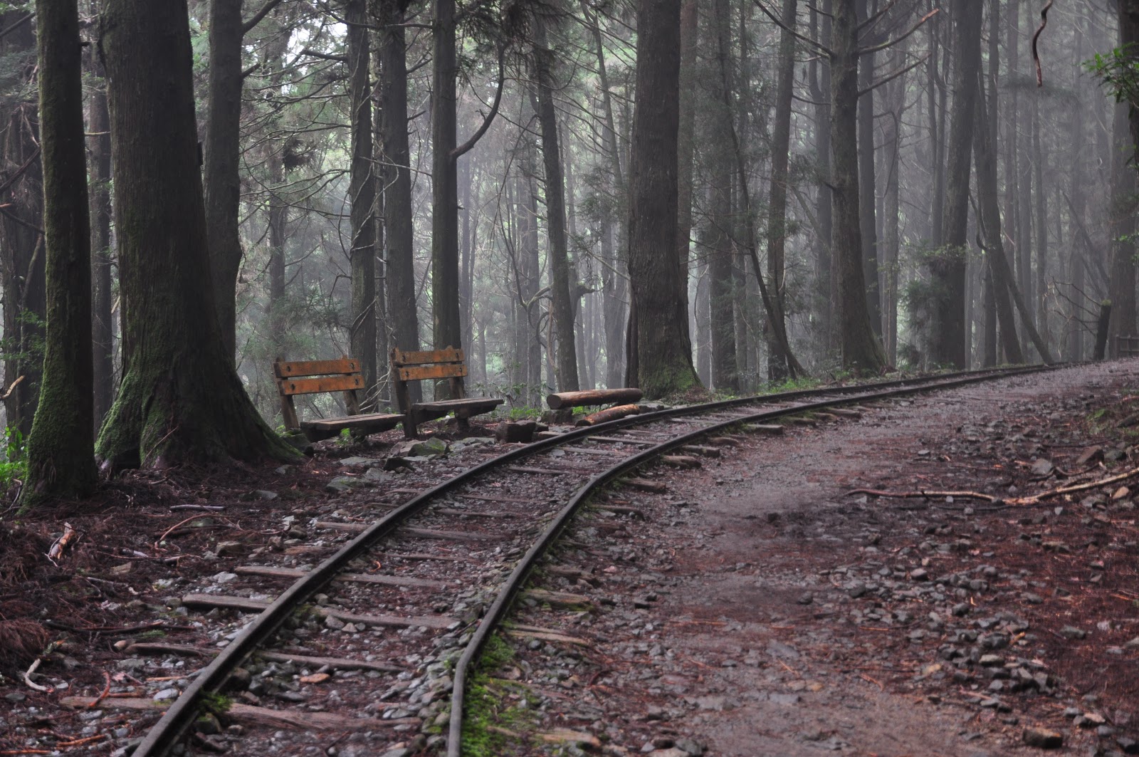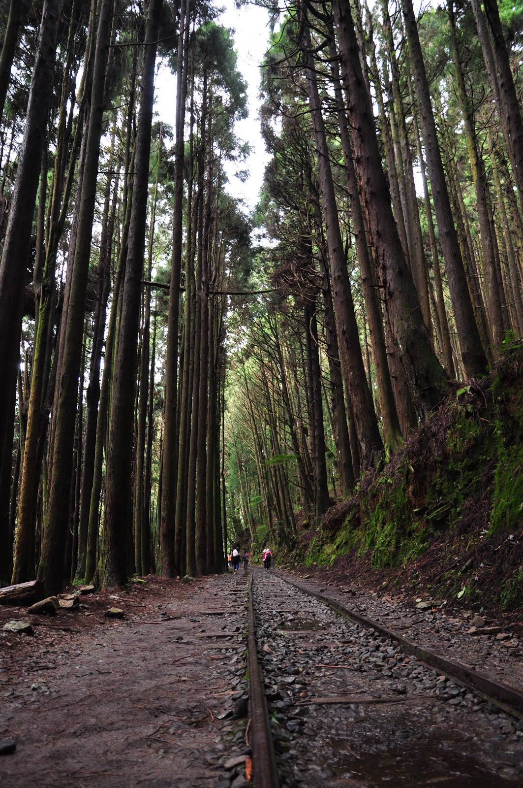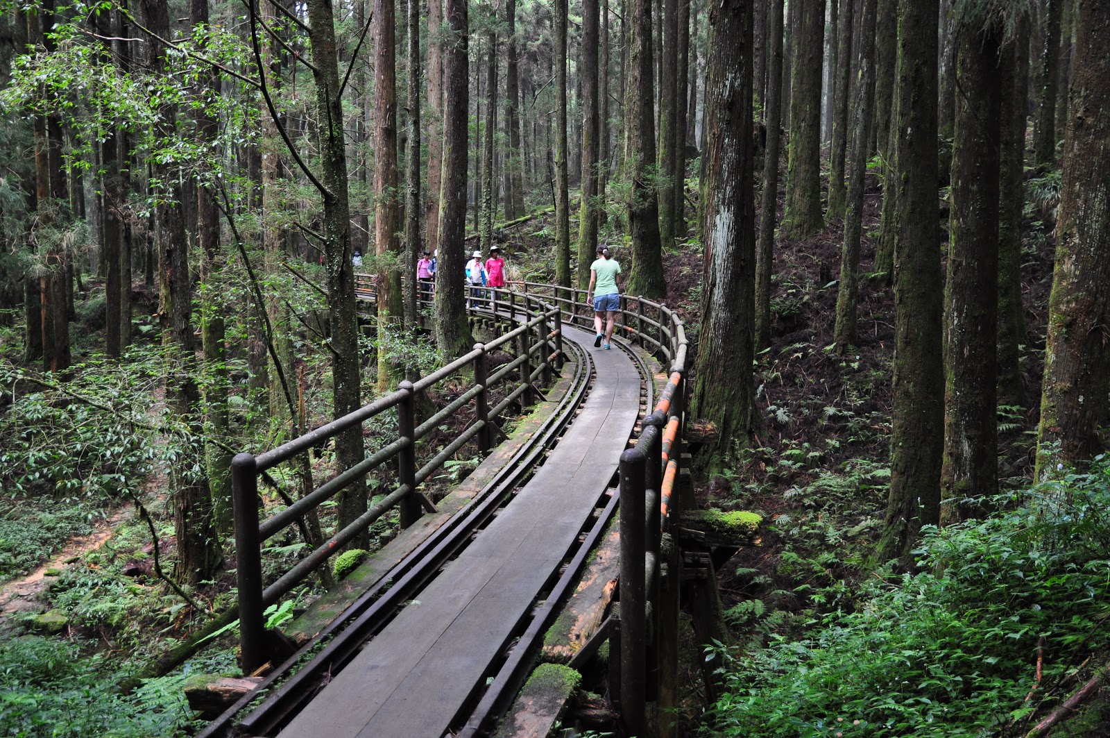 由嘉義阿里山鄉自忠的入口處海拔高度約為2280m進入, 全長6.32km出口在特富野,如不原路往返就必須兩地接駁, 我們選擇原路來回因此走了約13km, 此古道的前3.7km 皆是平坦且寬的碎石泥土路再加上火車軌道與橋樑, 林相為人造的柳杉林偶有大樹頭真優美, 過3.7km就是向下的階梯步道直到出口特富野處海拔約為1780m, 林相到此也漸漸改成闊葉林 , 所以後2.6km共下降了500m高度左右, 去程沒啥感覺, 回程時就必須還債了