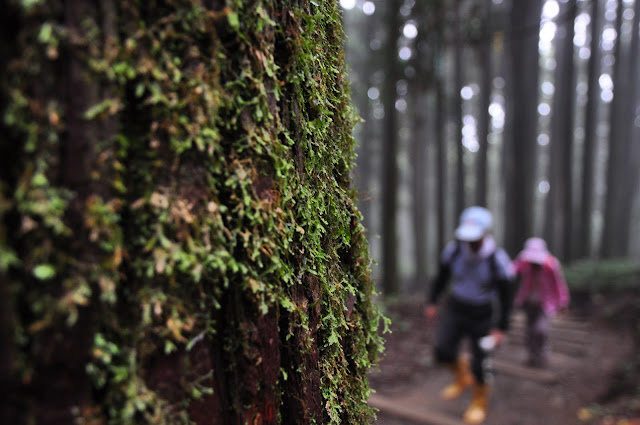 沒多久雲霧繚繞, 聽著樹梢沙沙的雨聲, 雨珠從葉子間滾落可好像雨還不大, 不過先把相機收起來吧!
