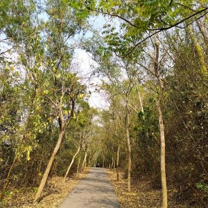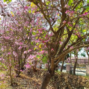 園區比較吸睛的是洋蹄甲,粉紅色的花朵,更增添了步道的景色,剛長途久坐,晨起眼還矇矇,頭也昏昏,看到了粉紅色有被morning call了的感覺,抖抖腿,伸伸腰背,整裝起步走.