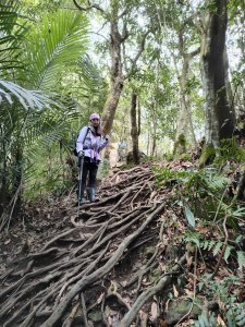 繼續往向天湖山前行,一路走在陵線上上下下,時有陽光灑入林間,林道走起來也比較乾爽舒適,慢慢行走其間,耳聽鳥啼林稍,蟲鳴草坪上,深呼吸溫暖溼潤的清新空氣,好友間戲虐大笑中,幸福的芬園充溢著旅程,這種單純的快樂,很療愈人心,粉喜歡這樣的慶生派對