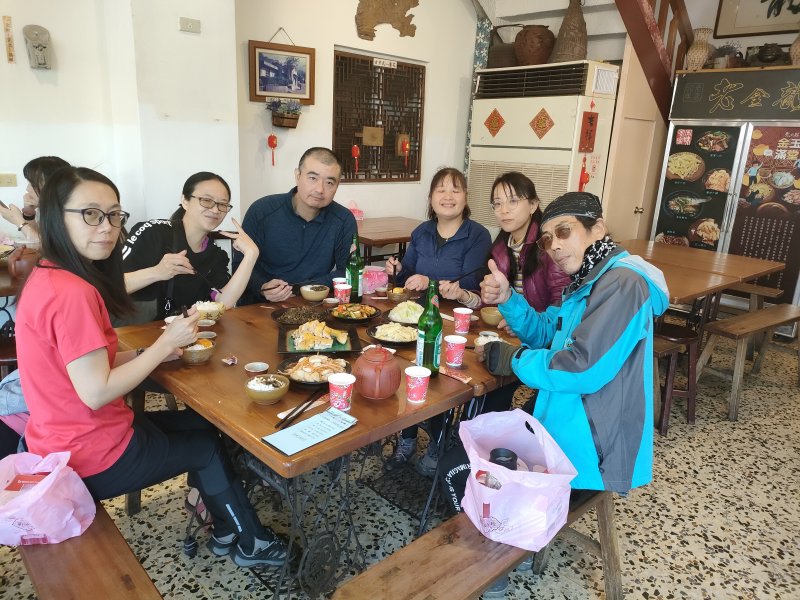 爬山後的聚餐,祭拜饑腸的五臟廟,這是必須要的,舉杯慶祝順利完成向天湖3山縱走,一口乾,金牌啤酒,入喉暢快的感覺,真的只有一個”爽”字可以形容,這飯吃起來特別的香甜,這蘊釀的快樂芬圍讓酒香飯甜很幸福