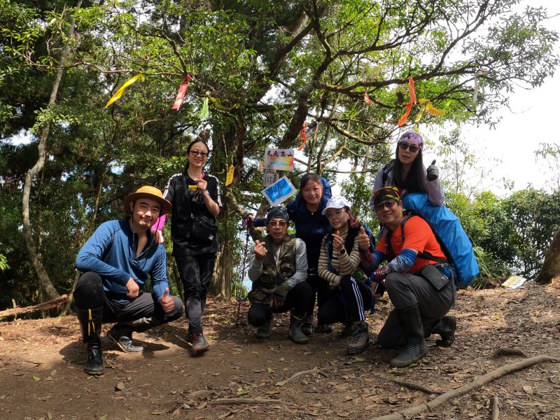 3~4分鐘就登頂了,三角湖山885m,小休10分鐘拍照留念,光天高,向天湖,三角湖,3山連走行程完成了,用這樣健康又歡樂的時光,來慶助生日與結婚,真的很有意義,往後每年的3月都要廣邀英雄帖,邀好友們共襄盛舉